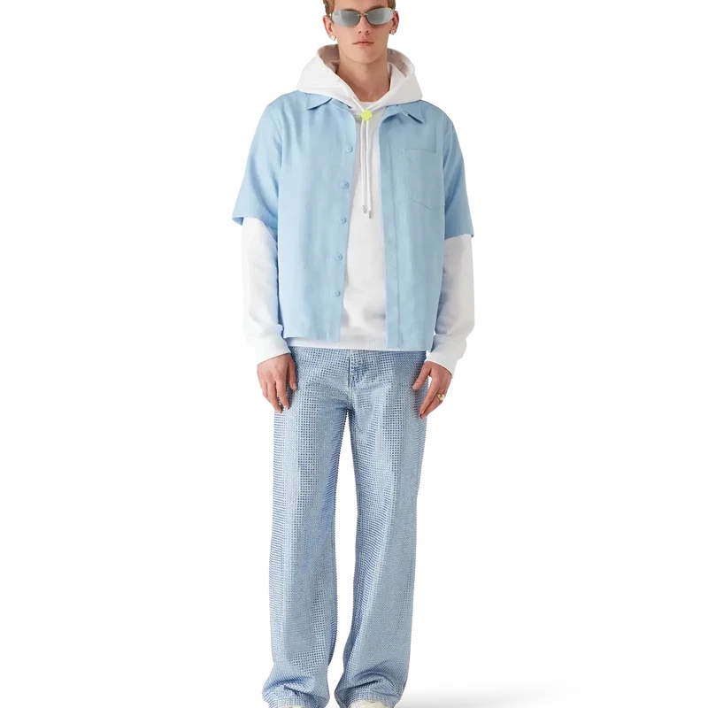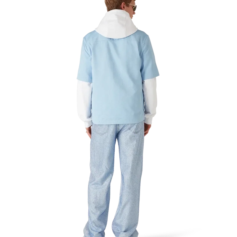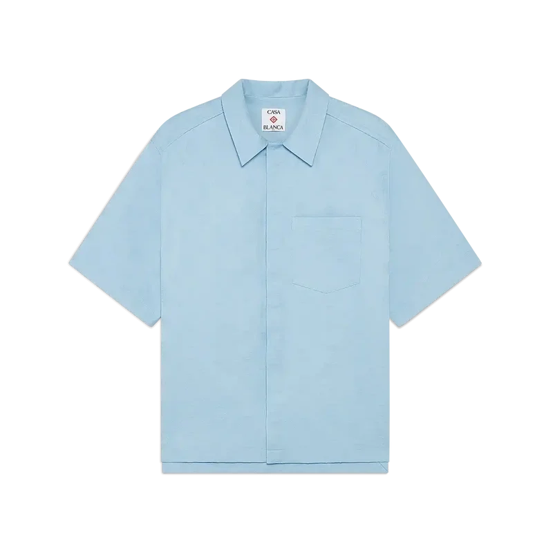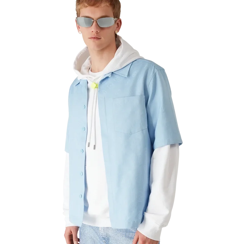 La camicia a maniche corte Monogram azzurra presenta un design raffinato caratterizzato dal motivo Monogram iconico della Maison. È rifinita con colletto a punta, tasca applicata sul davanti, chiusura con bottoni, bottoni in corozo con logo CC intrecciato e orlo asimmetrico.