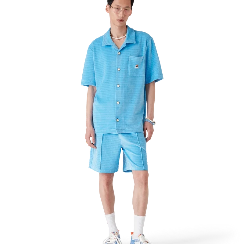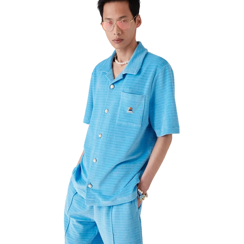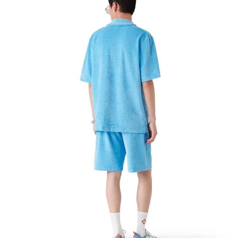 Camicia a righe in velluto a maniche corte in pantaloncini