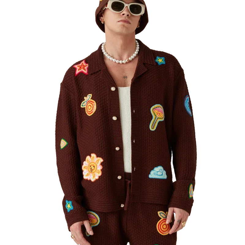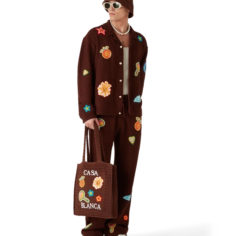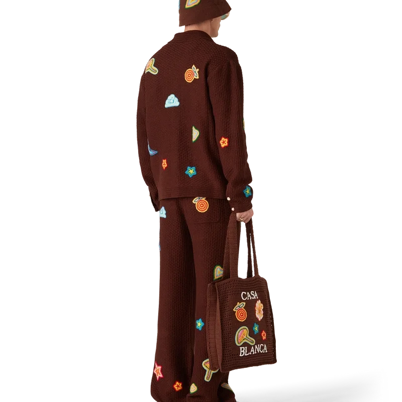 La camicia all’uncinetto con motivi è un modello a maniche lunghe realizzato in tessuto all’uncinetto in cotone mercerizzato. Rifinita con motivi che richiamano gli elementi di design classici della Maison, bottoni in madreperla con bordo dorato, collo e polsini a costine.