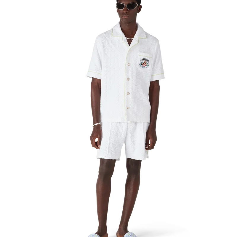 Camicia classica in spugna a maniche corte bianca in pantaloncini