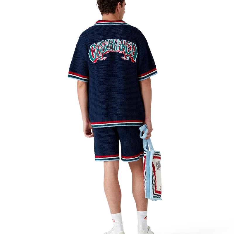 La camicia gotica all’uncinetto è un modello a maniche corte realizzato in tessuto di cotone all’uncinetto e presenta il logo a rombo caratteristico del marchio. Completata da bottoni in madreperla con bordo dorato, tasche applicate sul davanti e dettagli a strisce sul colletto, sui polsini e sull’orlo.