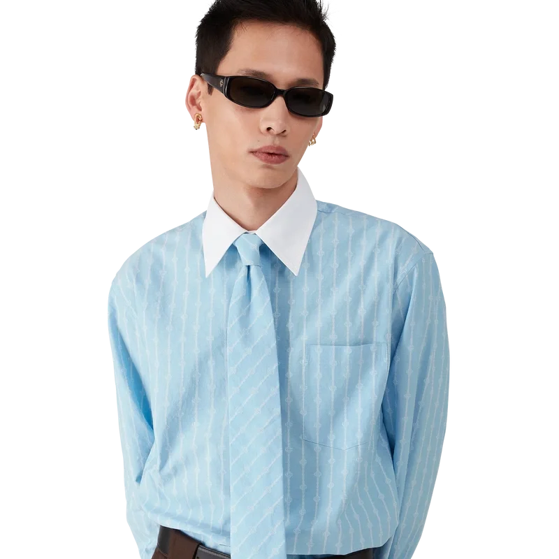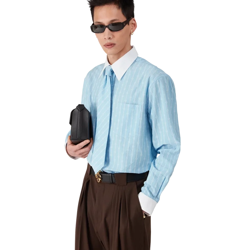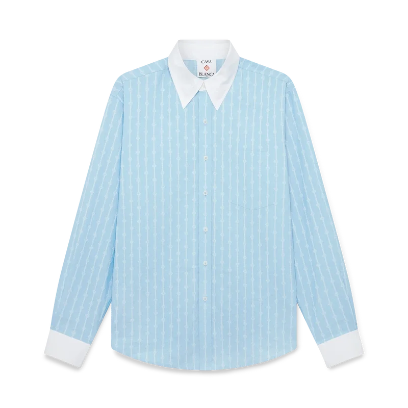 La camicia jacquard a righe Laurel è un modello sartoriale a maniche lunghe realizzato in tessuto jacquard di cotone. Rifinita con polsini bianchi a contrasto e colletto a punta, chiusura con bottoni in corozo con logo Cc intrecciato e taschino sul petto.