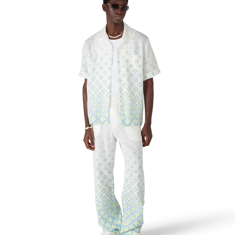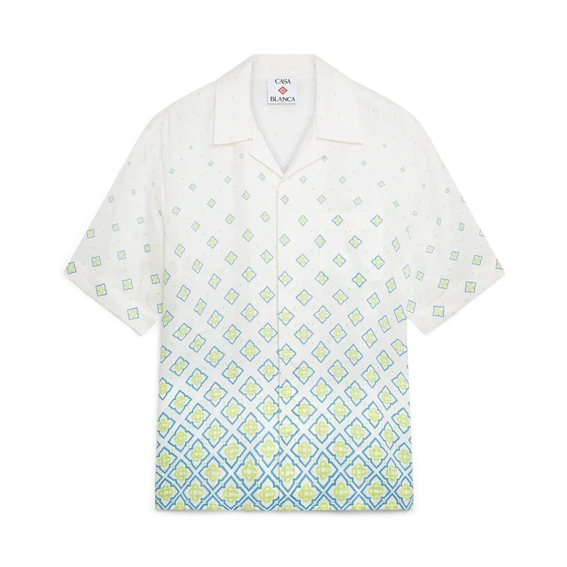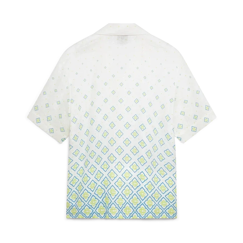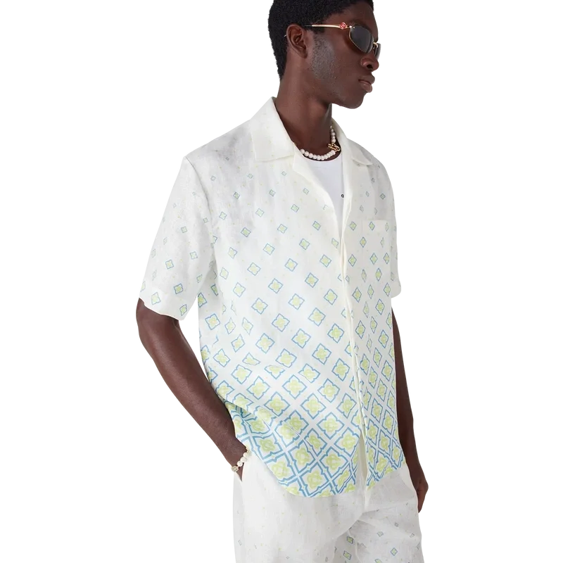 La camicia in lino a maniche pantaloncini con monogramma sfumato presenta un raffinato design con colletto. È rifinita con colletto alla cubana, chiusura con bottoni in corozo con logo CC intrecciato e taschino sul petto.<!–