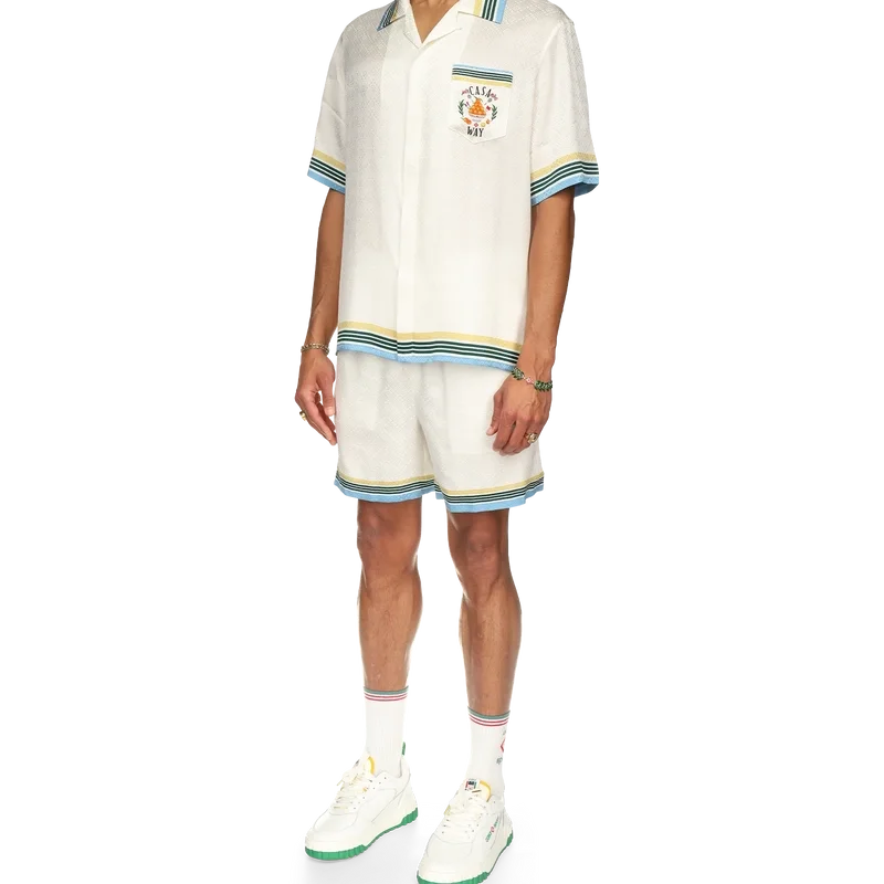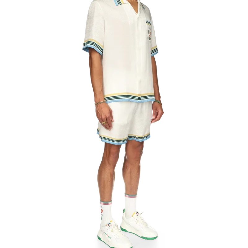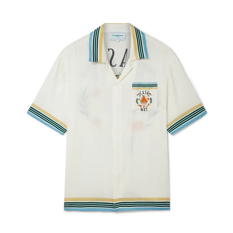 La camicia in seta Casa Way presenta una stampa dell’iconica piramide arancione della maison con racchette da tennis e dettagli floreali reinterpretati per questa stagione. Rifinita con un’etichetta con il marchio Casablanca e dettagli a contrasto su colletto, polsini, orlo e taschino – Progettata per una vestibilità classica.