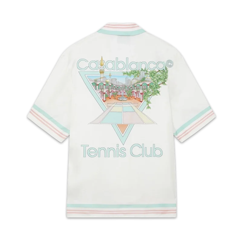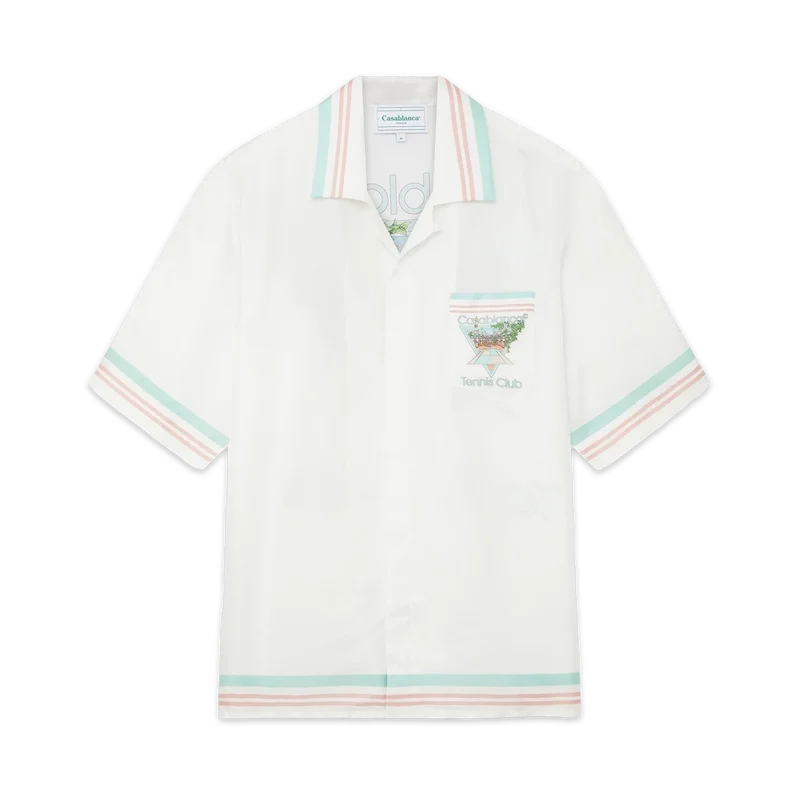 La camicia in seta Tennis Club Icon Pastelle presenta la grafica iconica della Maison reinterpretata per questa stagione. Rifinita con un colletto cubano pensato per essere indossato aperto con chiusura frontale a bottoni, è stata progettata per una vestibilità comoda.