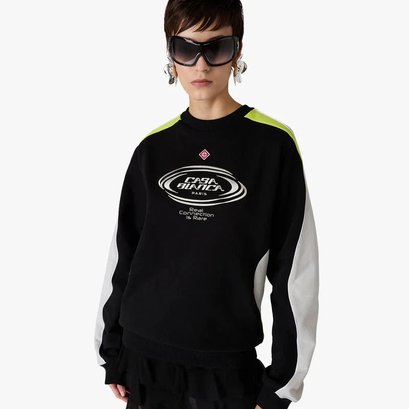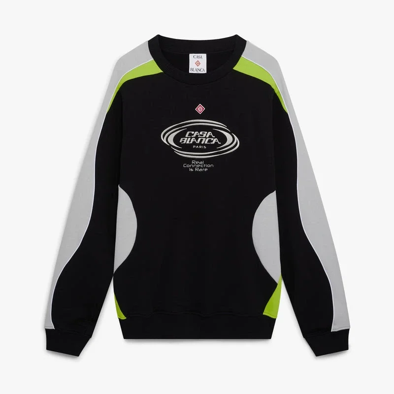 La felpa a maniche lunghe con blocchi di colore è un raffinato modello unisex, caratterizzato da uno stile a blocchi di colore con il logo a rombi iconico della Maison. Completata da girocollo, dettagli a piping, polsini e orlo a costine, il logo Casablanca della Maison e una silhouette morbida.