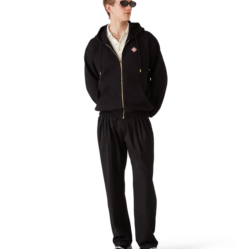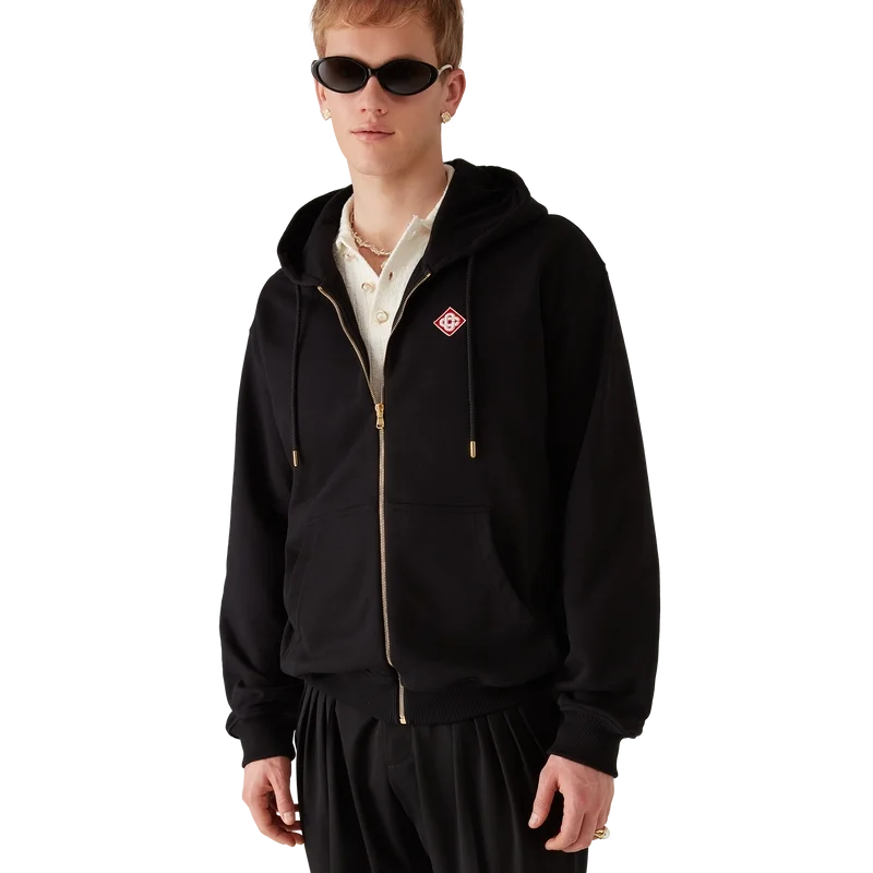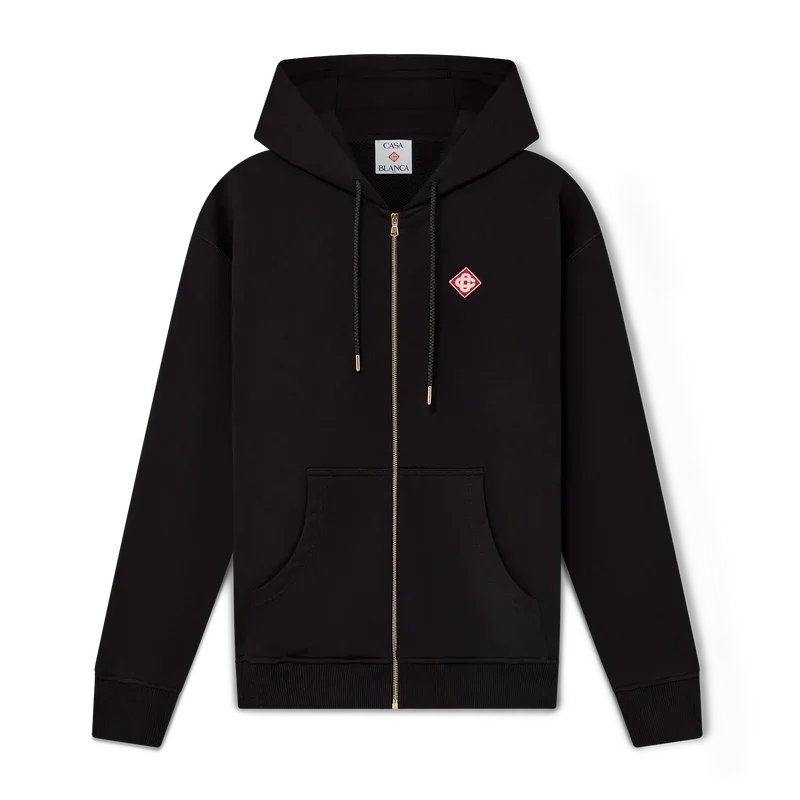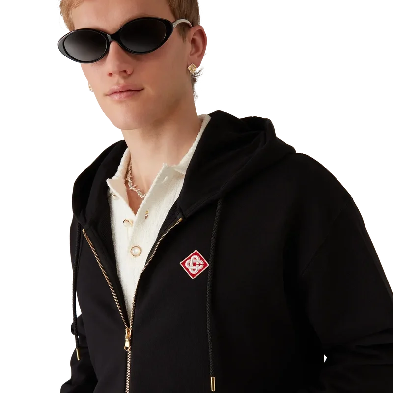 La classica felpa con cappuccio e zip integrale è un raffinato modello Apras-Sport che presenta il logo CC intrecciato della Maison. Completata da chiusura con zip integrale, tasca a marsupio, polsini e orlo a costine e cordino con puntali dorati.