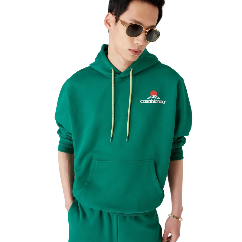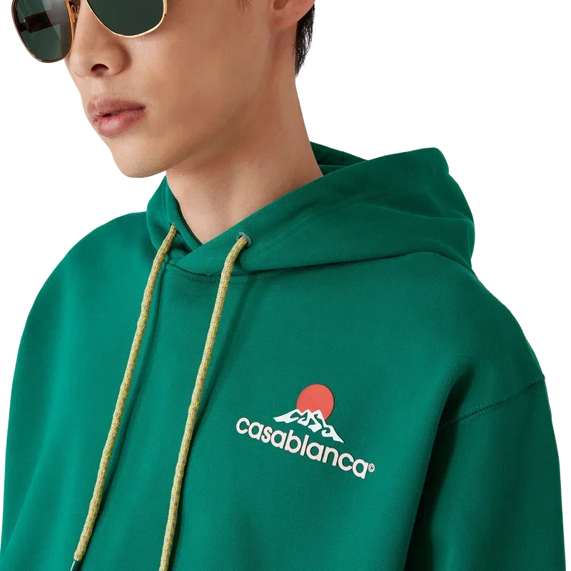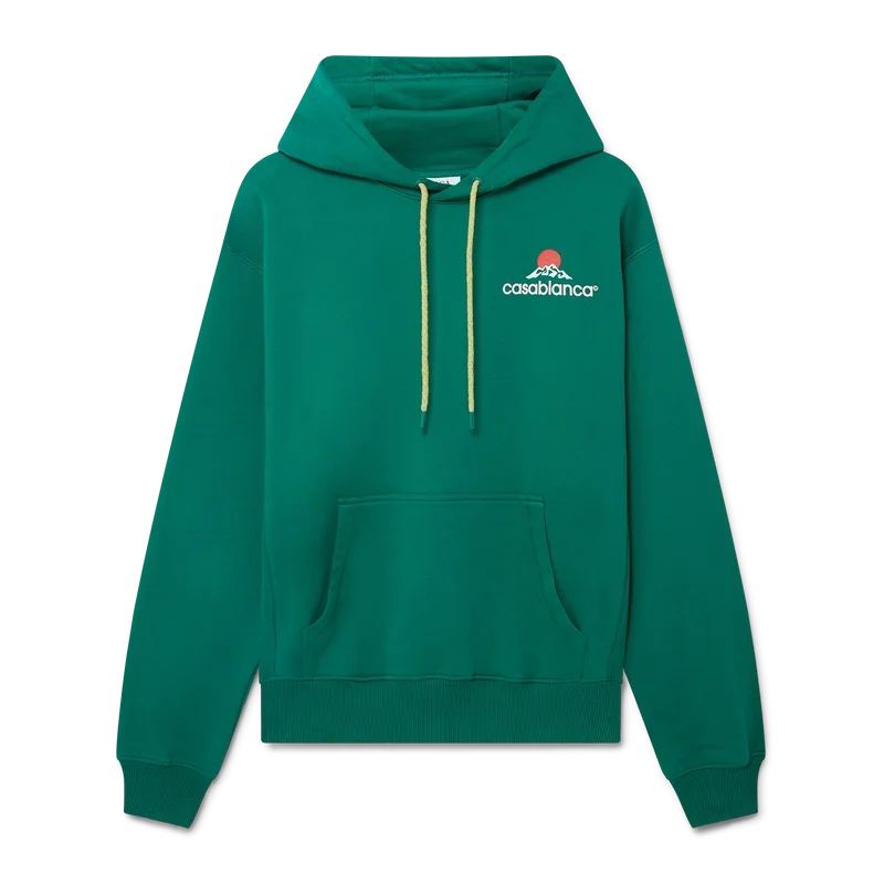 La felpa con cappuccio Montagne è un modello a maniche lunghe realizzato in tessuto di cotone biologico e presenta la grafica stagionale della casa: un logo che a prima vista sembra una montagna, ma che, guardando più da vicino, si legge come “Casa”. Rifinita con cappuccio con chiusura a coulisse, tasca a marsupio sul davanti, polsini e orlo a costine.