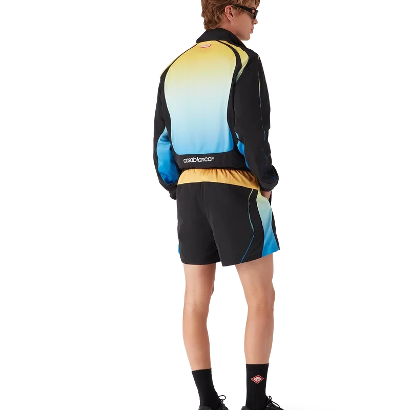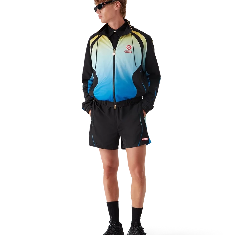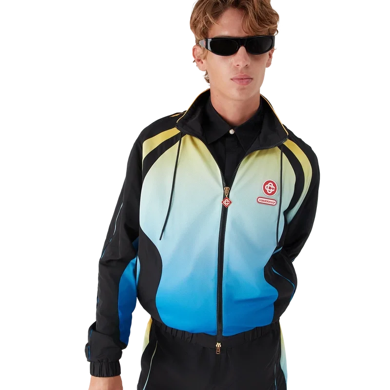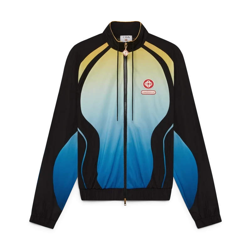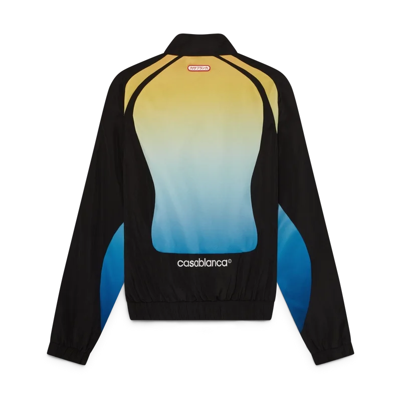 La giacca a vento Gradient è un capo sportivo a maniche lunghe che presenta il caratteristico logo CC intrecciato della Maison e la toppa con il logo Casablanca, nella nostra tradizione di reinterpretare le potenti palette di colori naturali – La nostra sfumatura stagionale si ispira alle tonalità naturali vivaci e suggestive delle rane freccia avvelenate; le tonalità audaci dal blu al giallo simboleggiano un avvertimento in natura e vengono utilizzate con la stessa intenzione di attirare l’attenzione nelle nostre stampe e nei nostri modelli sportivi, in contrasto con pannelli nero intenso dalle forme organiche e fluide che imitano i motivi distintivi di questi animali. Completato da un collo alto con dettaglio di bordino giallo, chiusura con coulisse, chiusura con cerniera con linguetta con il caratteristico logo a diamante, polsini e orlo elasticizzati e pannelli neri.