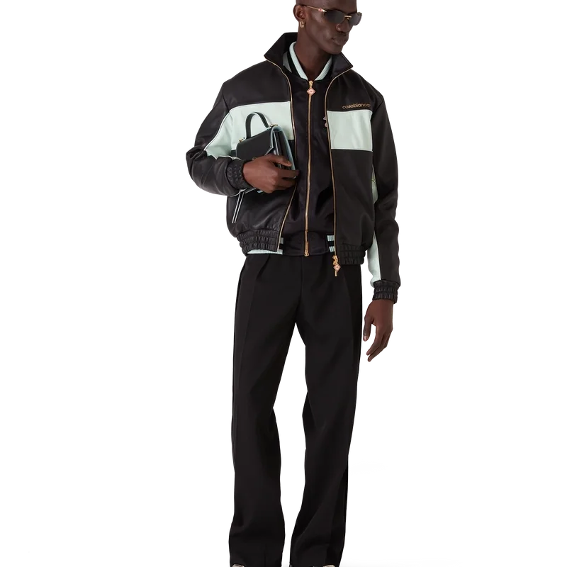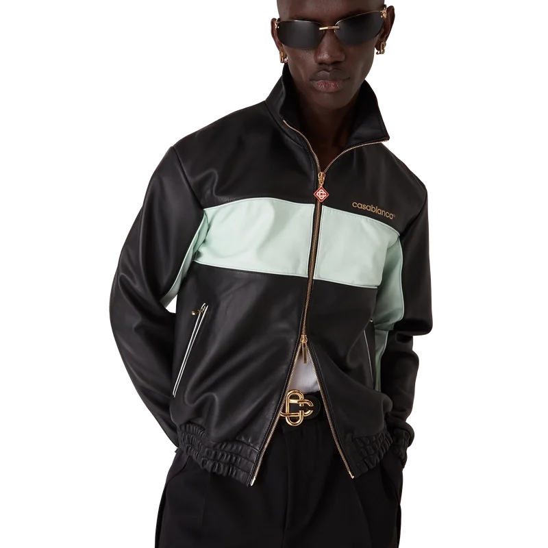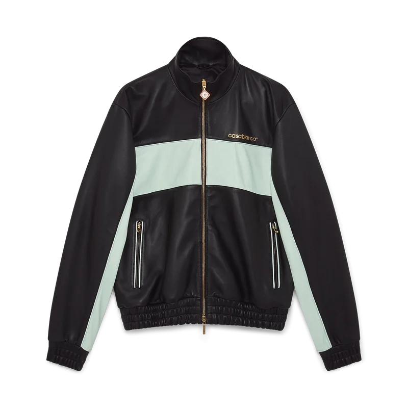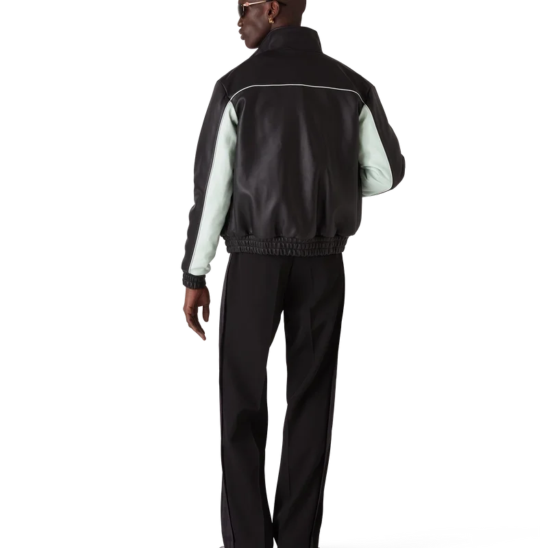 La giacca da tuta in pelle è un modello a maniche lunghe realizzato in nappa di agnello. Rifinita con fodera, collo a imbuto, chiusura con zip con linguetta con il logo a diamante della Maison, tasche a filetto oblique e polsini e orlo elasticizzati.