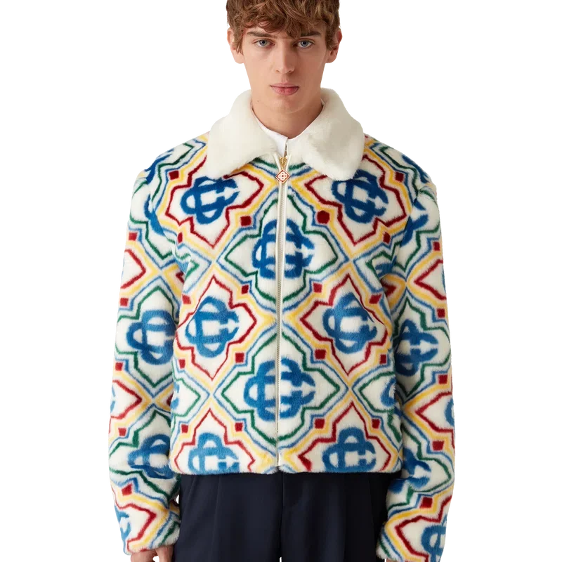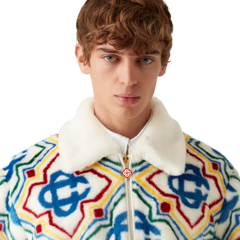 La giacca in pelliccia sintetica jacquard è un modello lussuoso dalla texture morbida, realizzato in tessuto jacquard in pelliccia sintetica con il logo Diamond Monogram della Maison. Rifinito con chiusura frontale con zip, tasche laterali a filetto, fodera e collo a lancia in nappa di agnello.