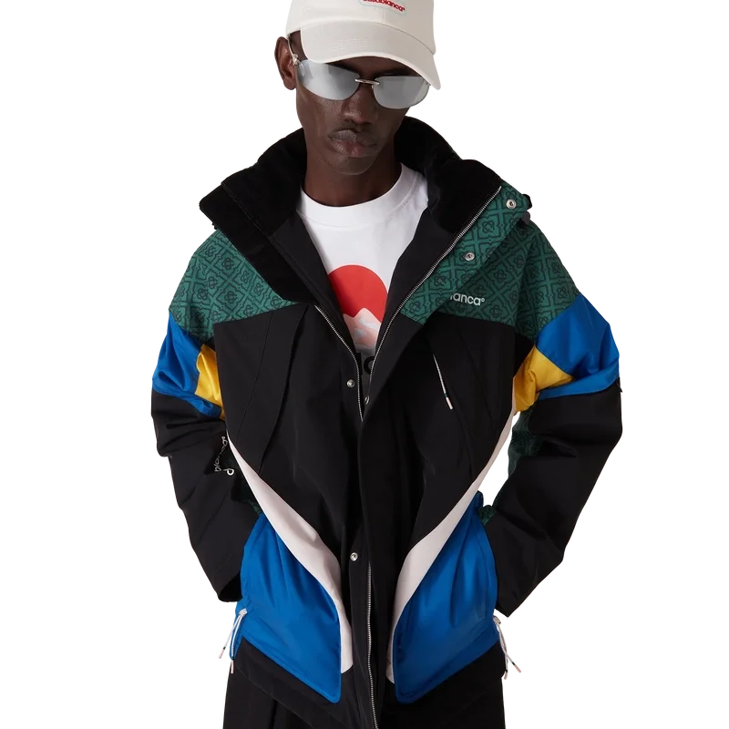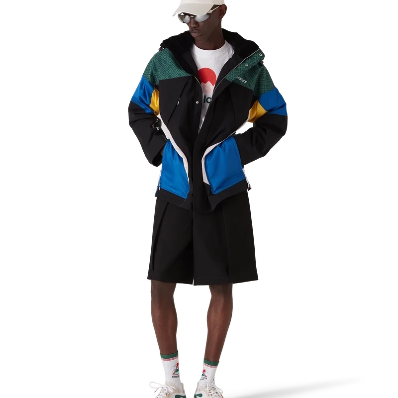 Il Ripstop Montagne Parka è un capo di capispalla caratterizzato dalla toppa con il logo a rombi, segno distintivo della Maison, realizzato in tessuto ripstop. Completo di collo a imbuto, cappuccio ripiegabile con chiusura a coulisse, chiusura con zip, tasche sul petto, sulle maniche e laterali con chiusura a zip, e vita e polsini regolabili.