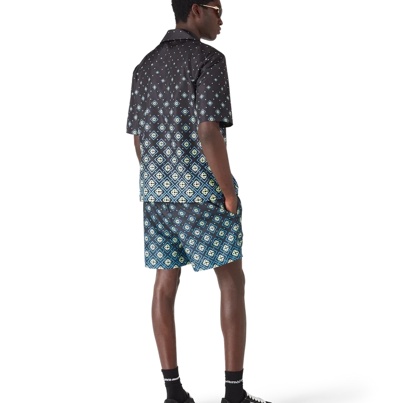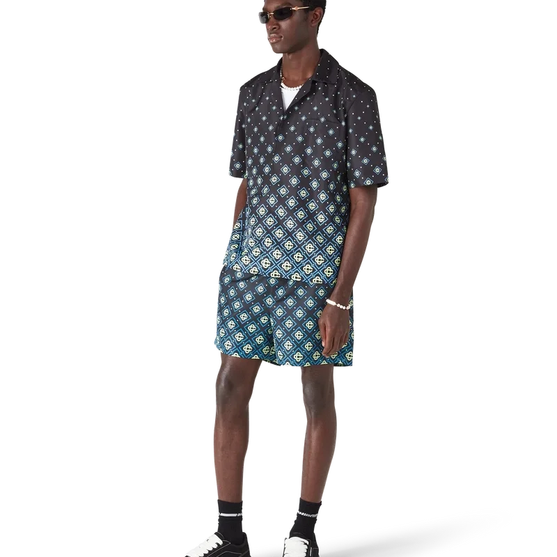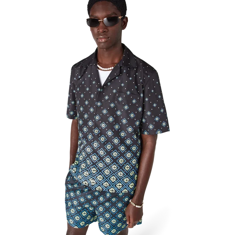 La maglietta da bagno Monogram nero sfumato è un modello tecnico raffinato che presenta il motivo Monogram della Maison. Realizzata in tessuto tecnico da bagno, presenta maniche corte, chiusura con bottoni, bottoni in corozo con logo CC intrecciato e dettagli sofisticati che catturano l’approccio raffinato del marchio ai costumi da bagno.