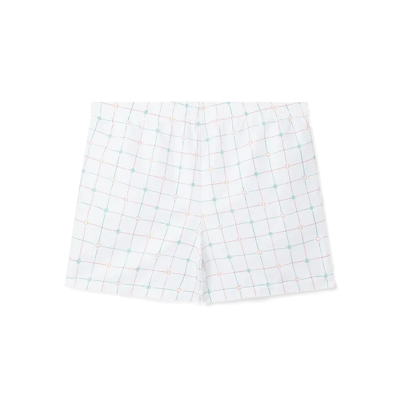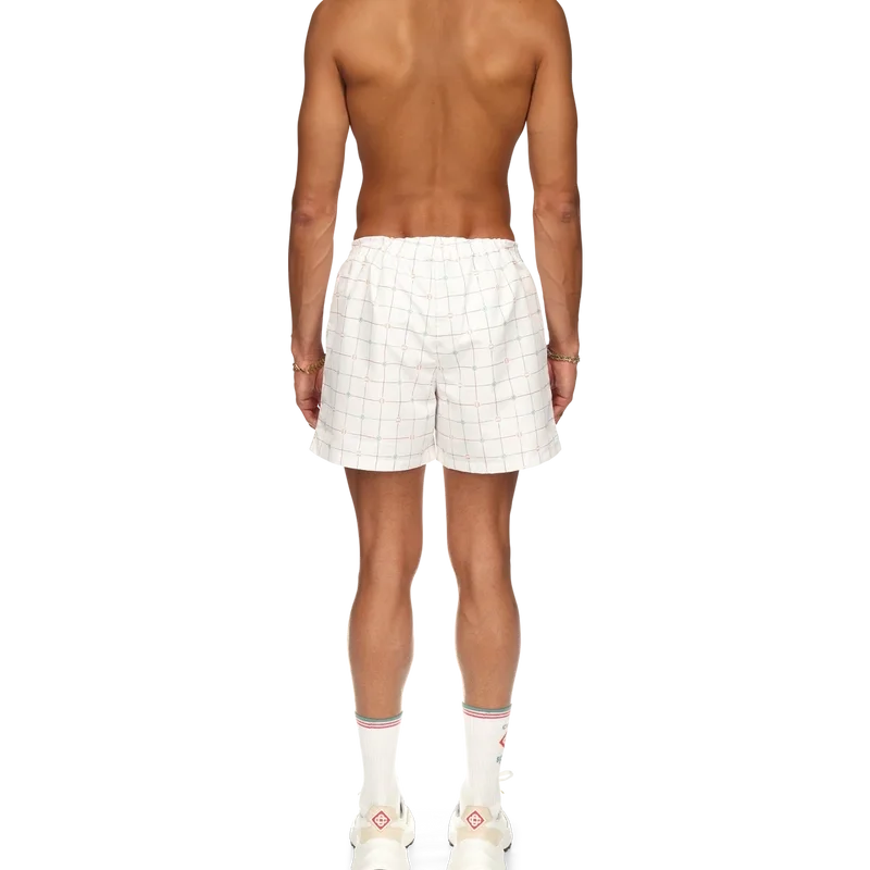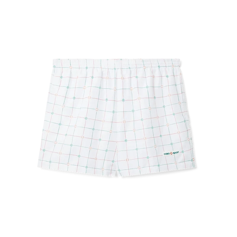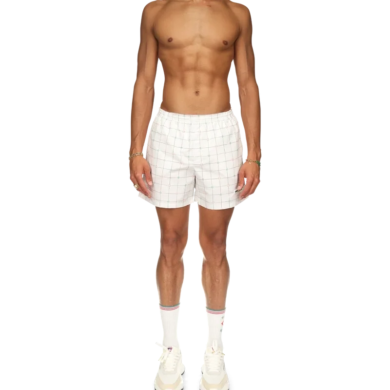 I pantaloncini da bagno a quadri tennis sono realizzati in tessuto tecnico di poliestere con un motivo a quadri arancione e verde Casablanca Paris. Completati da elastico in vita, chiusura con coulisse e tasche laterali.