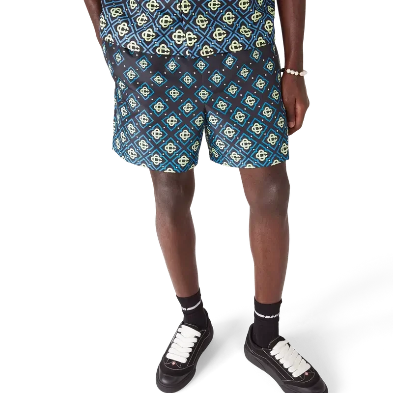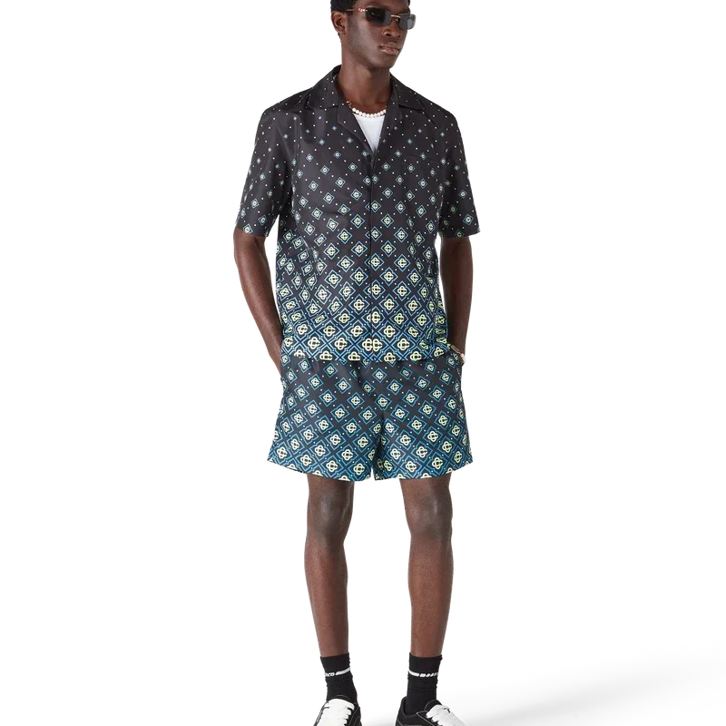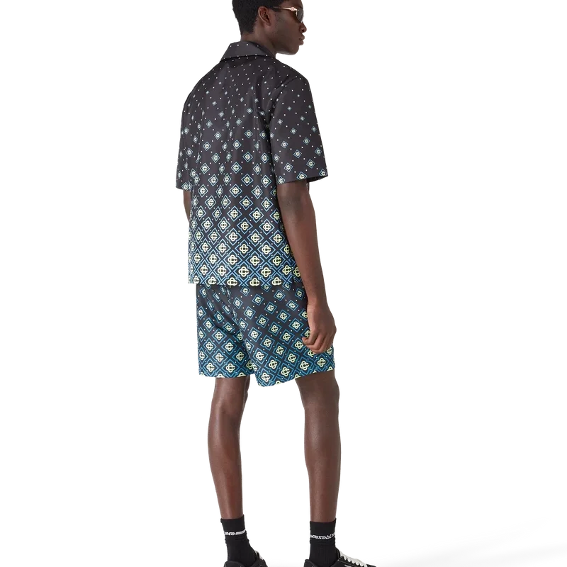 I pantaloncini da bagno con stampa Monogram nero sfumato presentano un raffinato design tecnico caratterizzato dalla stampa Monogram della Maison. Sono rifiniti con elastico in vita, tasche laterali, tessuto tecnico da bagno e dettagli sofisticati che incarnano l’approccio raffinato del marchio ai costumi da bagno.
