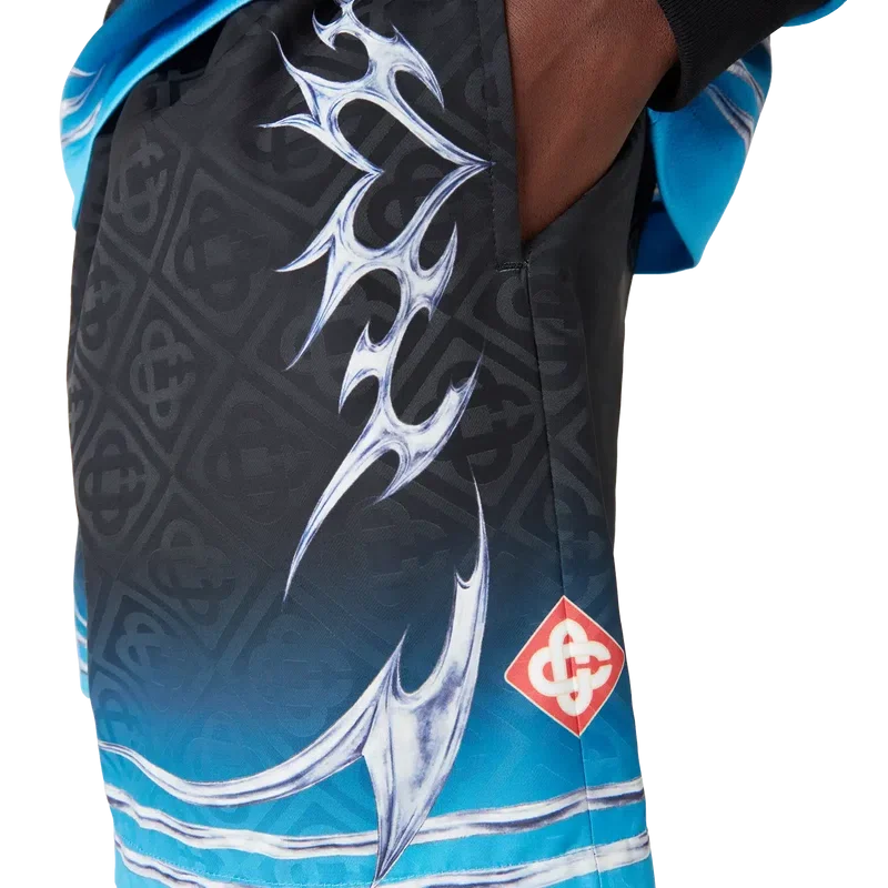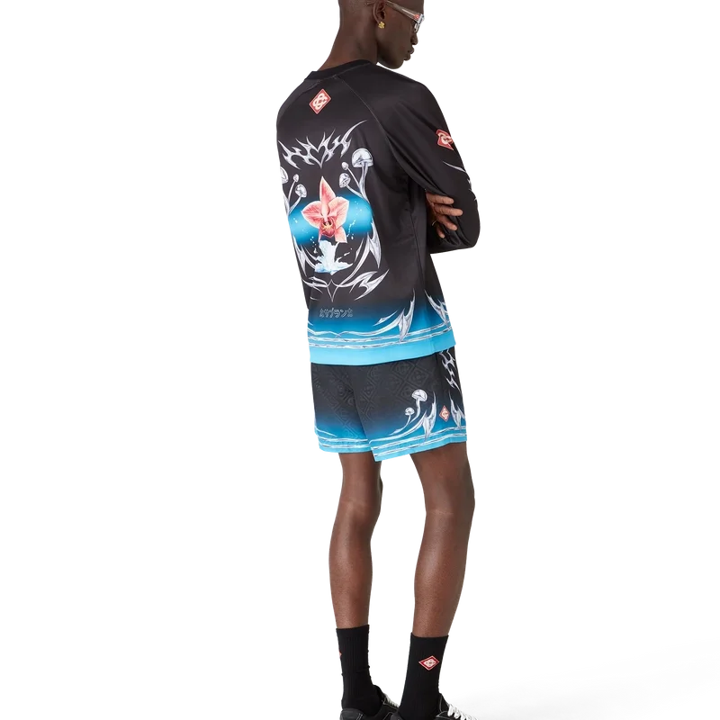 I pantaloncini da bagno Blades Jacquard presentano un design stampato con una grafica che gioca sul contrasto tra due sensazioni opposte: l’affilatura della lama e il freddo cromo argentato, in contrasto con il calore della natura, come le audaci tonalità rosa e rosse di un fiore di orchidea. L’aggiunta dell’acqua conferisce al design un elemento fresco e vivace. Completati da una cintura elasticizzata, chiusura interna con coulisse, fodera in rete e tasca interna.