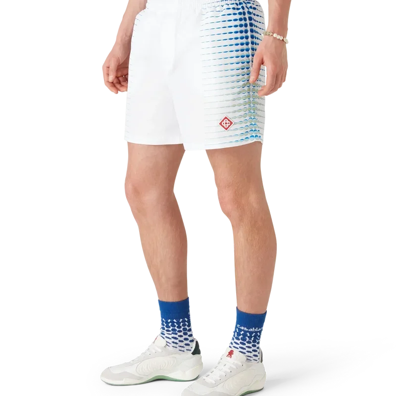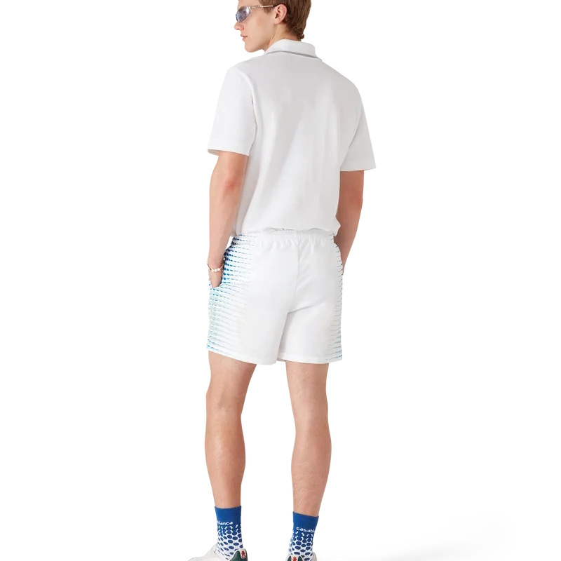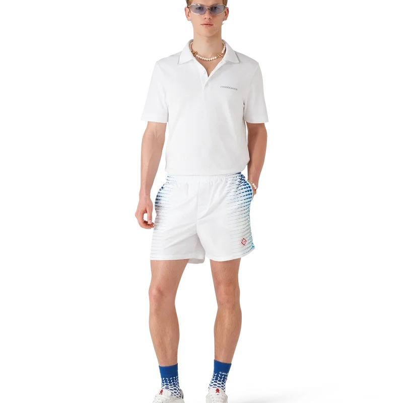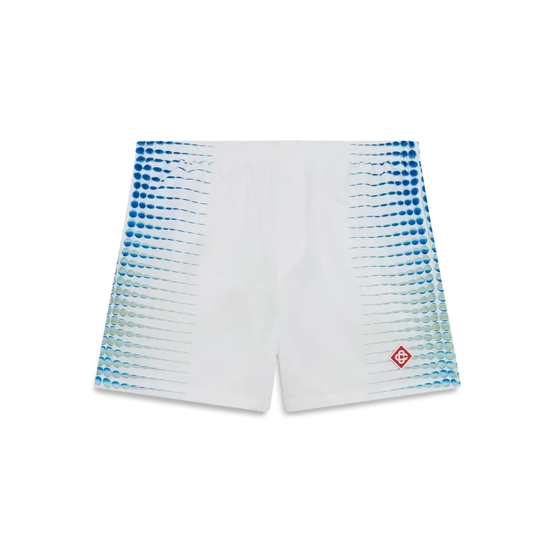 I pantaloncini da bagno stampati presentano un design raffinato con grafiche create in collaborazione con Martin Naumann, noto per il suo lavoro con sfumature ed effetti di texture, che creano mezzitoni ed effetti simili al vetro. Sono dotati di elastico in vita, chiusura interna con coulisse, tasche laterali interne e fodera.