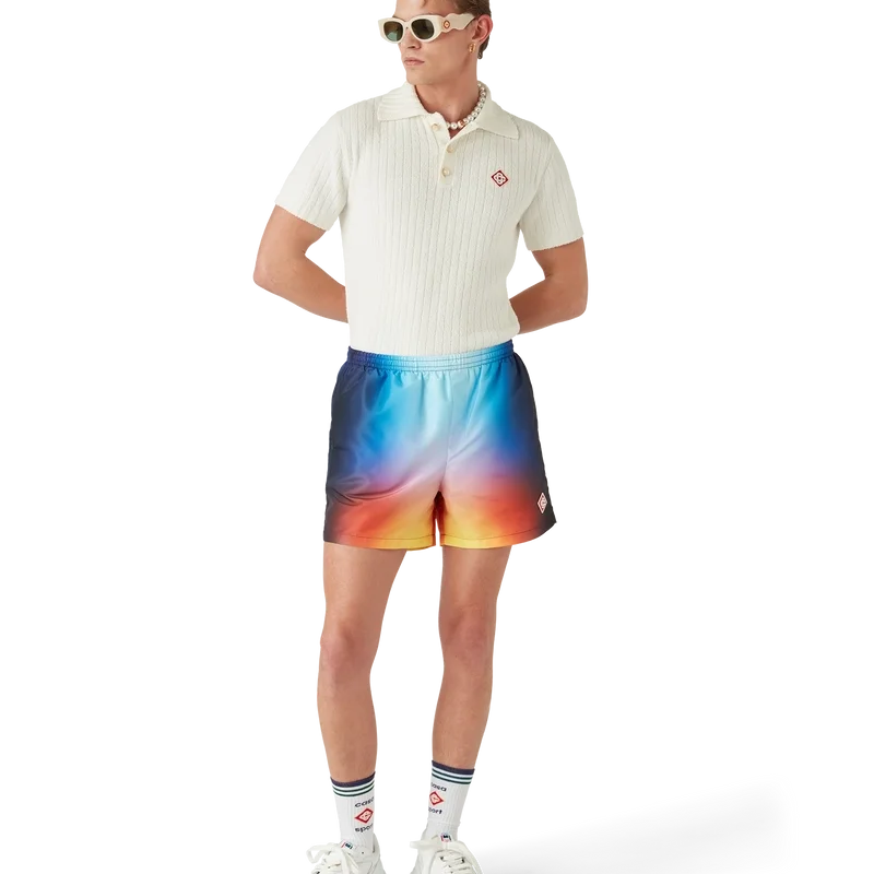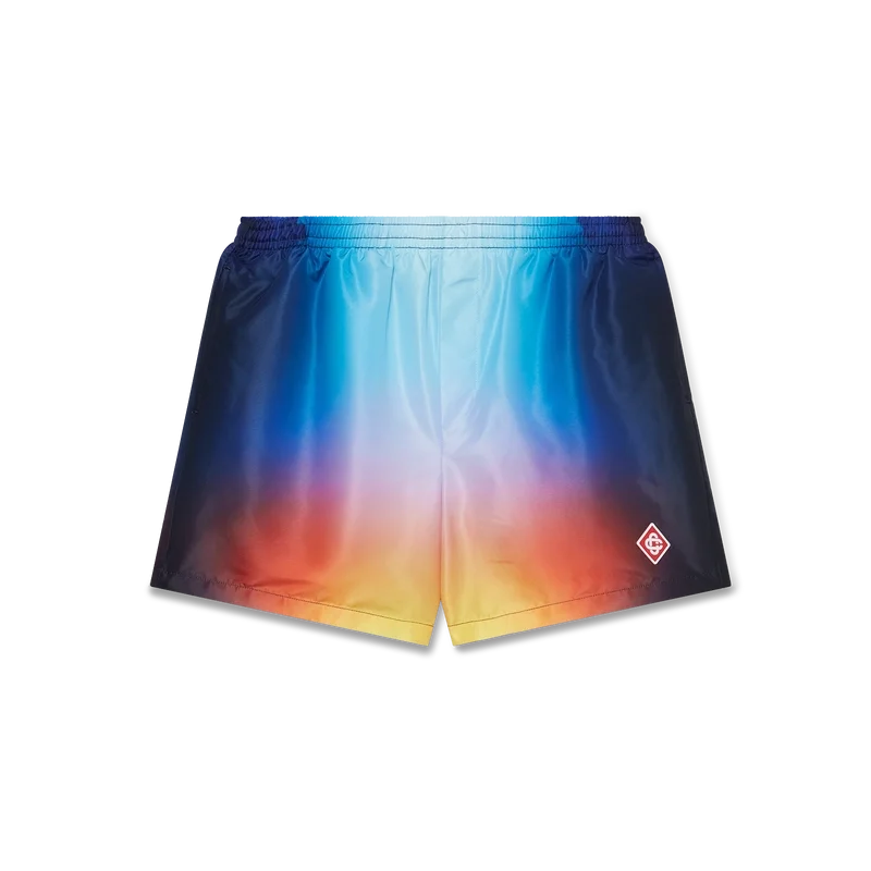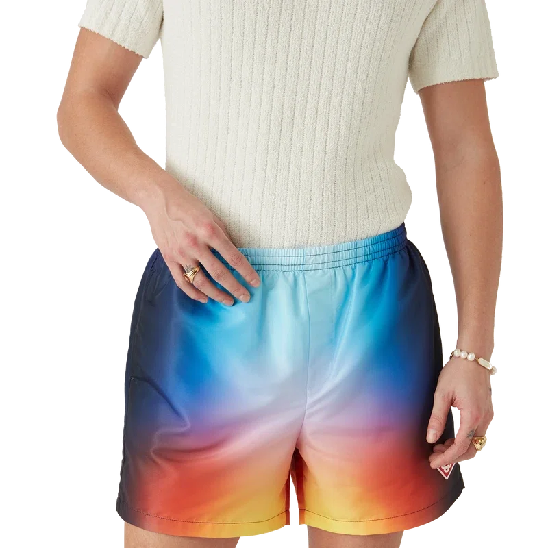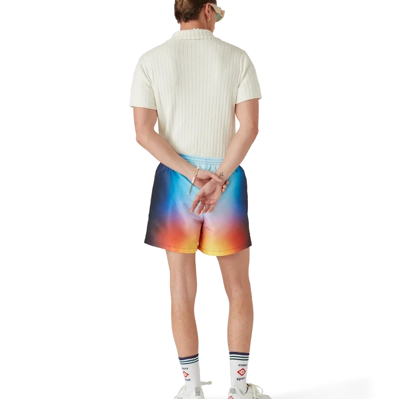 I pantaloncini da bagno Tie Dye presentano un design stampato con i colori sfumati di stagione e il caratteristico logo a rombo, realizzati in tessuto Tie-Dye. Dotati di elastico in vita, chiusura interna con coulisse, tasche laterali interne, fodera e tasca interna.