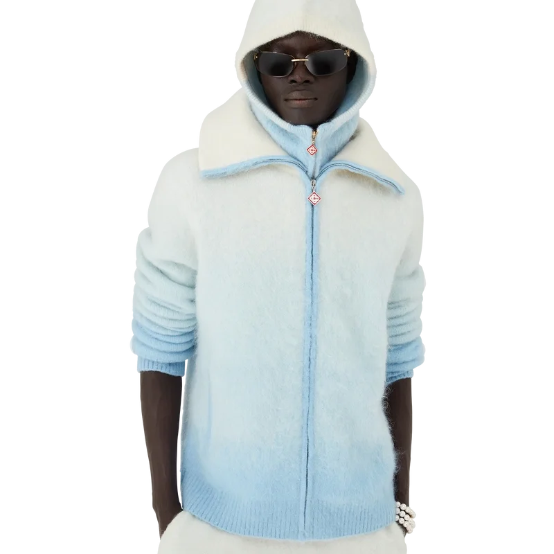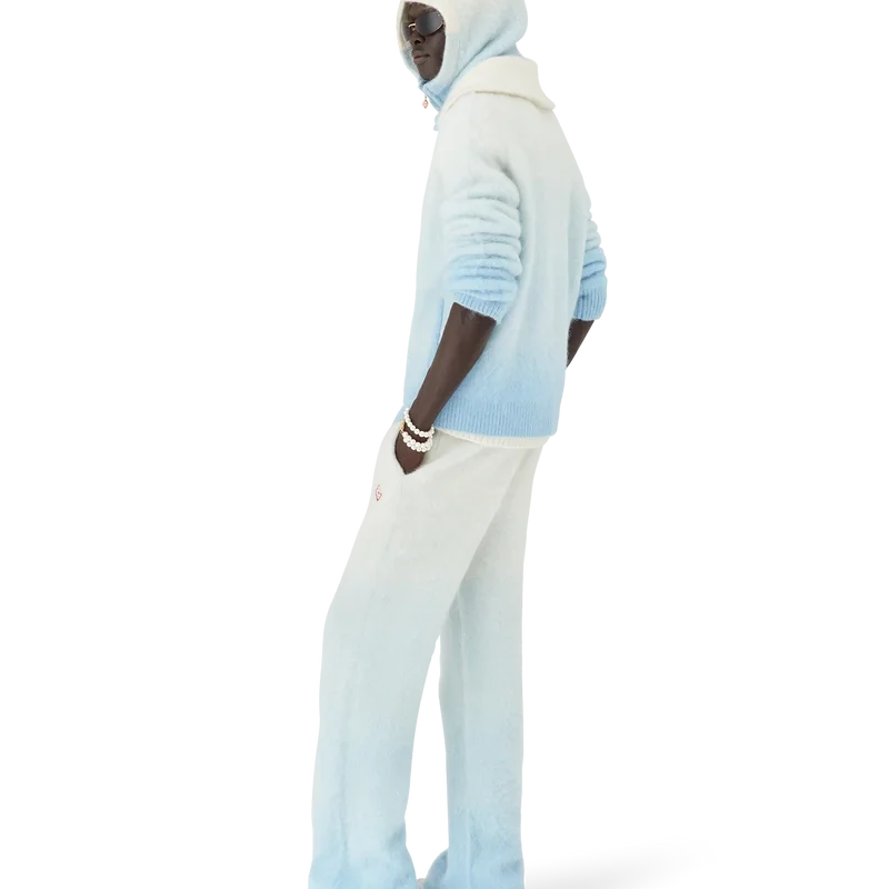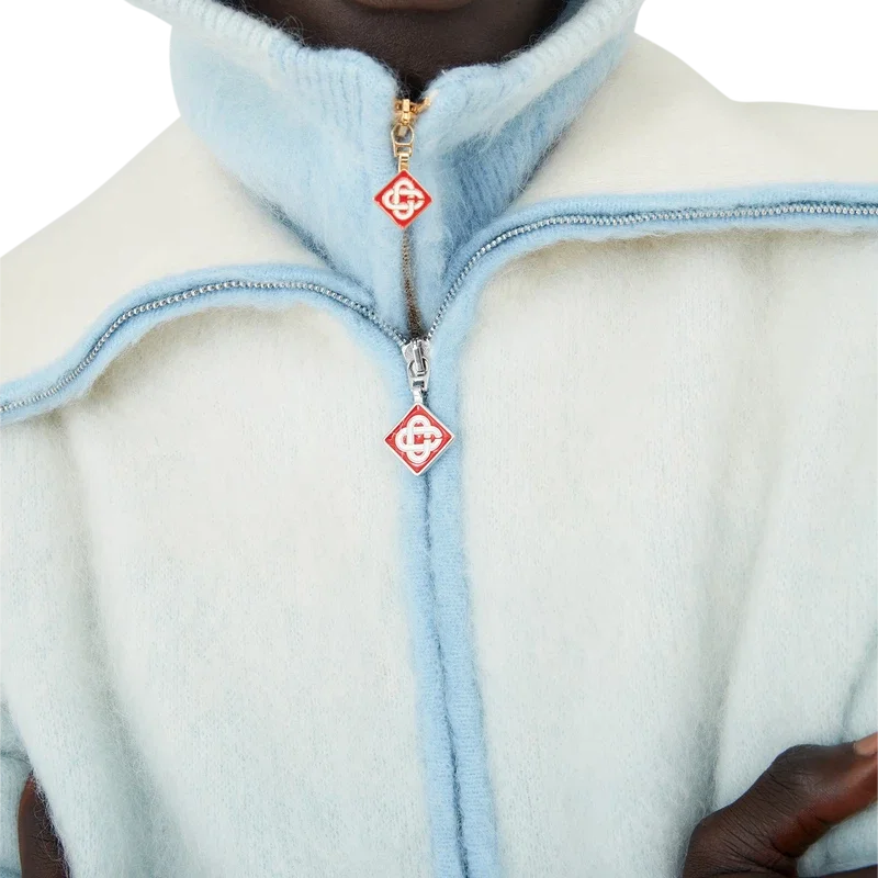 La giacca Ski Jumper è un raffinato modello Apras-Sport realizzato in tessuto misto mohair, caratterizzato da una sfumatura blu e bianca ispirata al crepuscolo sulle campagne innevate del Giappone. Evoca il momento di transizione in cui la luce del giorno che volge al termine incontra la neve fresca che ricopre le valli montane rurali e i ruscelli ghiacciati che serpeggiano attraverso i campi coltivati dell’Hokkaido.
