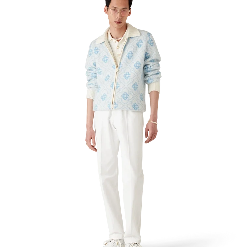 Il maglione con zip in mohair Monogram è un modello Monogram a maniche lunghe realizzato in tessuto di mohair. Rifinito con chiusura a zip, linguetta della cerniera con il caratteristico logo a rombi, collo, polsini e orlo a costine.