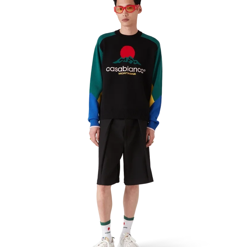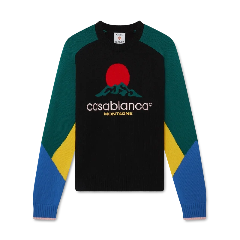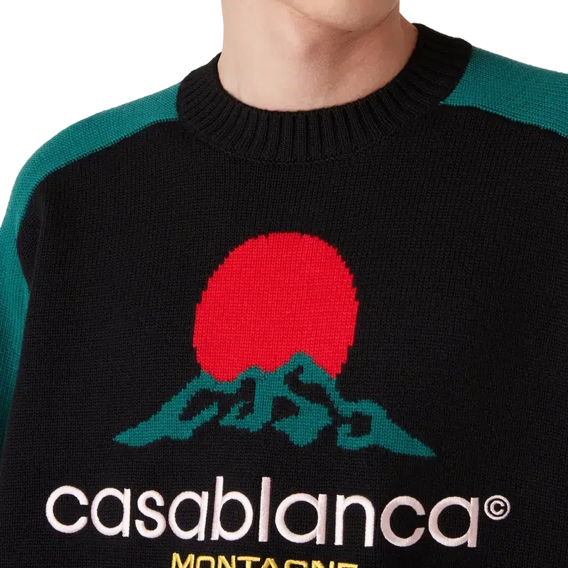 Il maglione Montagne Merino è un modello a maniche lunghe in maglia realizzato in tessuto di cotone. Rifinito con il logo Casa Montagne – un logo che a prima vista sembra una montagna ma che, guardando più da vicino, si legge come Casa – sul petto, polsini a costine con dettagli sui bordi e un classico girocollo.