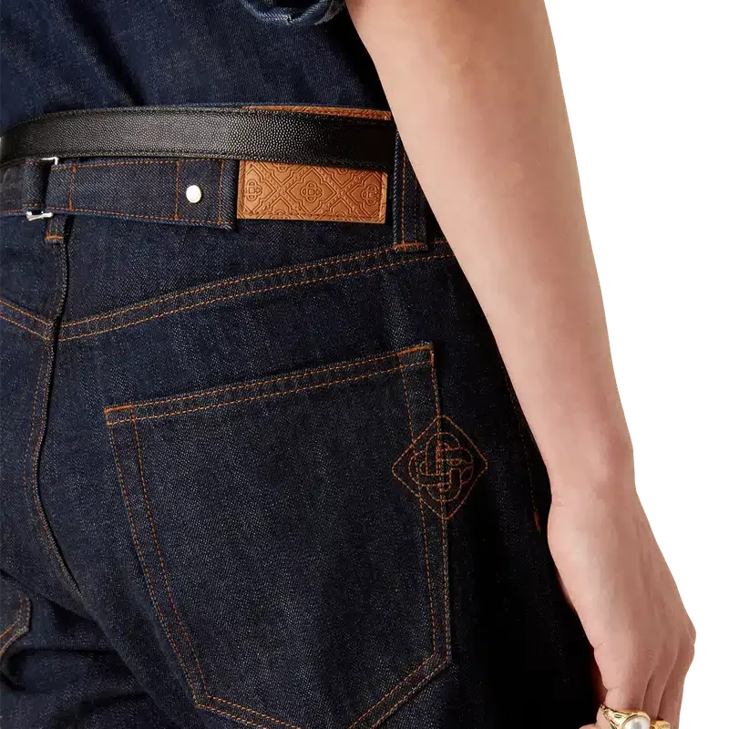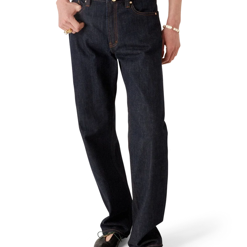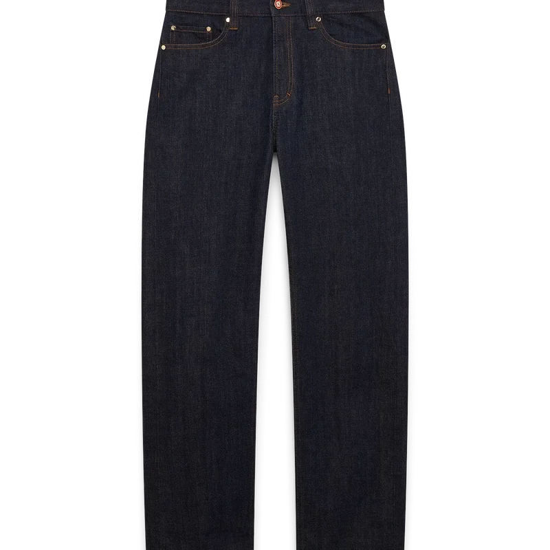 I jeans in denim selvedge Laurel hanno un taglio dritto e sono realizzati in tessuto denim di cotone. Sono dotati di passanti per cintura, tasche anteriori e posteriori, chiusura con cerniera e dettagli metallici placcati in oro con marchio.