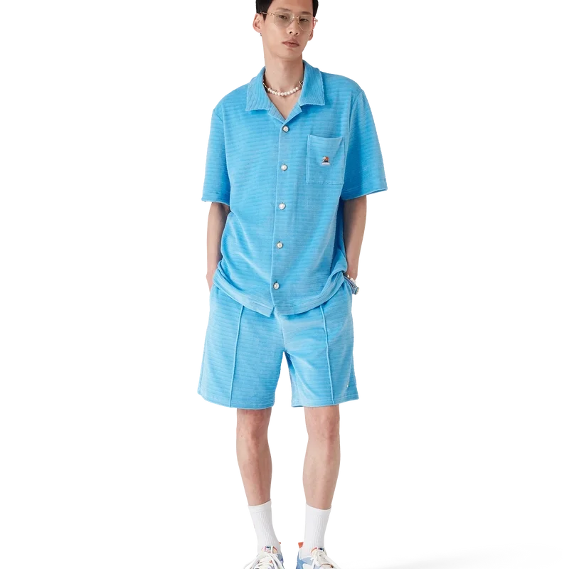 I pantaloncini a righe in velluto sono un modello classico realizzato in tessuto di velluto a righe. Sono dotati di elastico in vita, chiusura con coulisse, cuciture a pieghe sul davanti, tasca posteriore con chiusura a zip e tasche laterali interne.