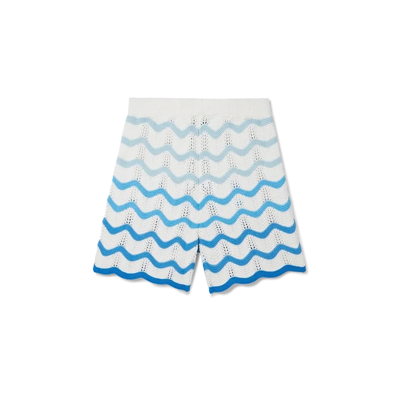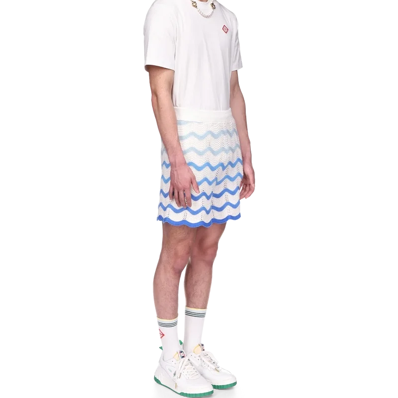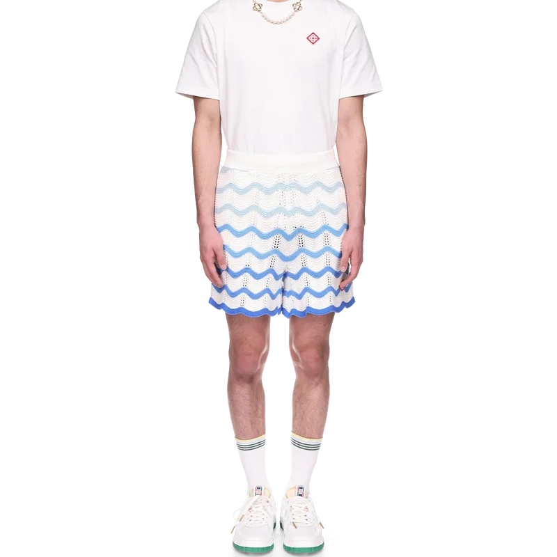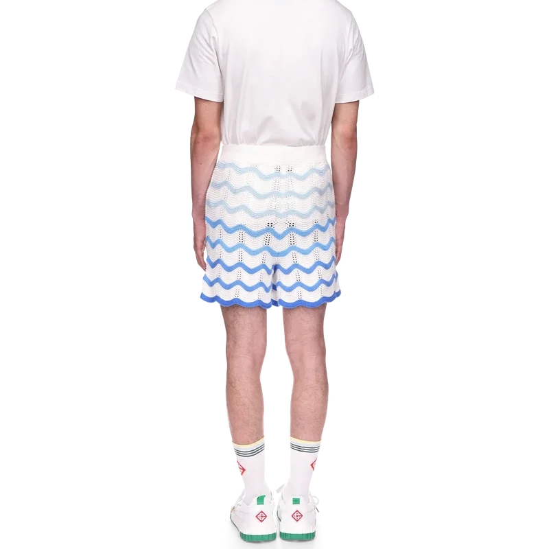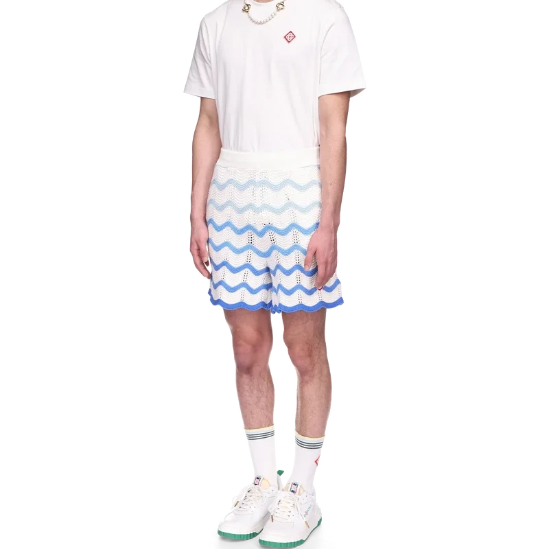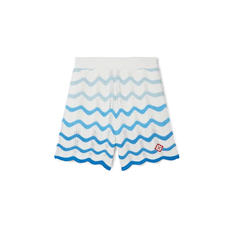 I pantaloncini Wavy Gradient Crochet sono un modello iconico di Casablanca, realizzati in morbido tessuto all’uncinetto a trama aperta. Rifiniti con chiusura interna con coulisse, logo a diamante della Maison ed etichetta con marchio Casablanca.