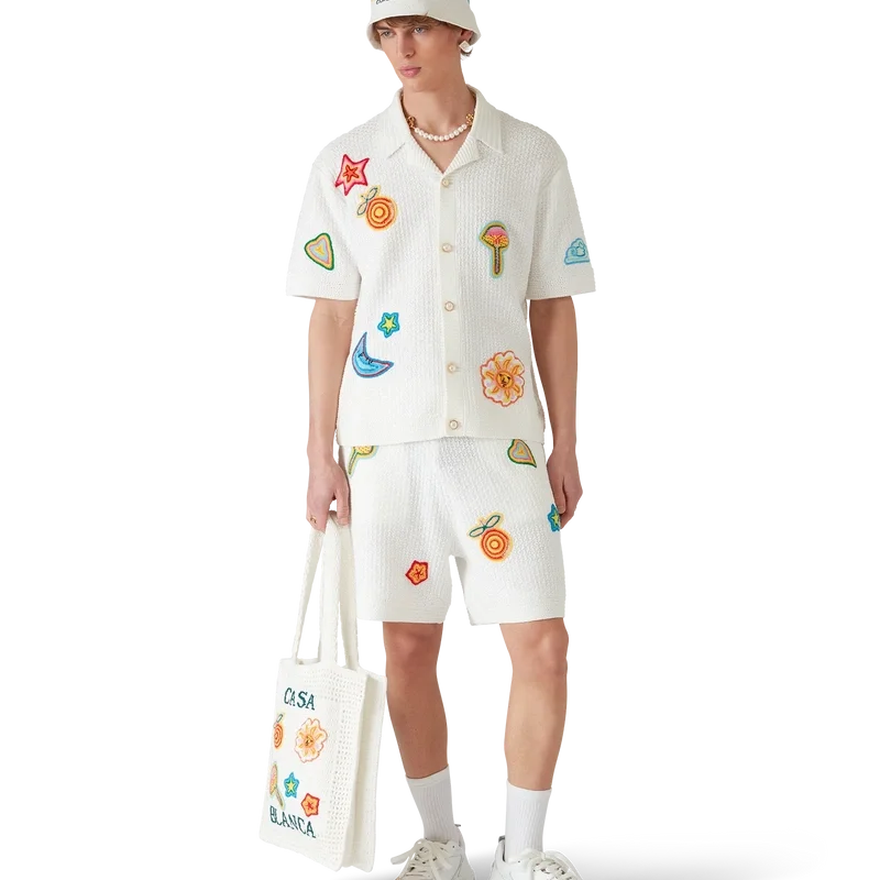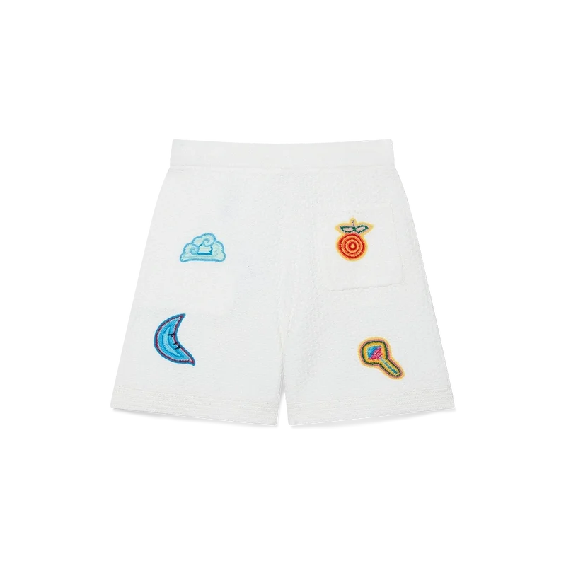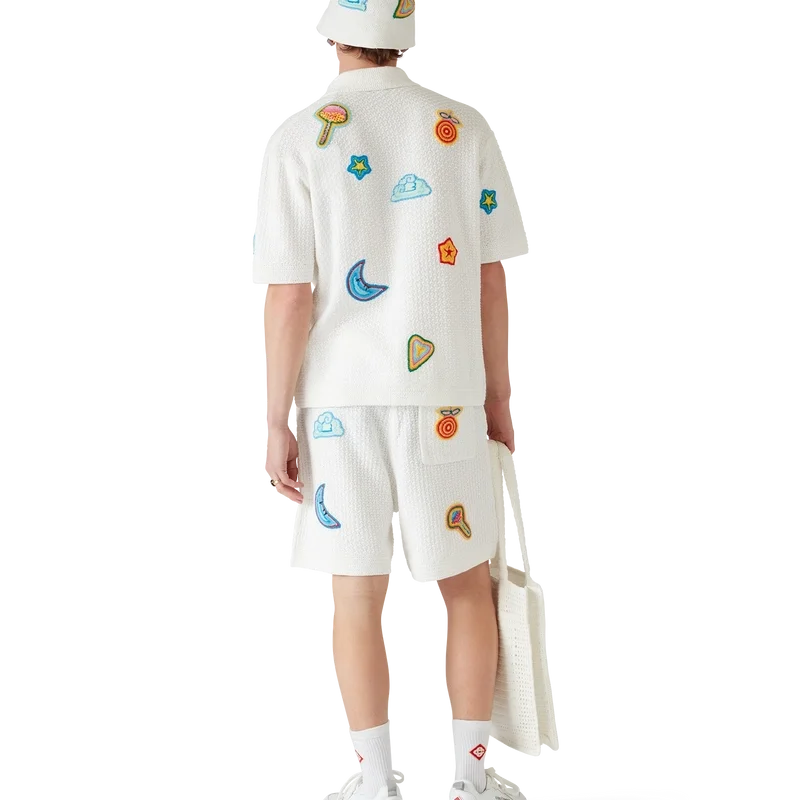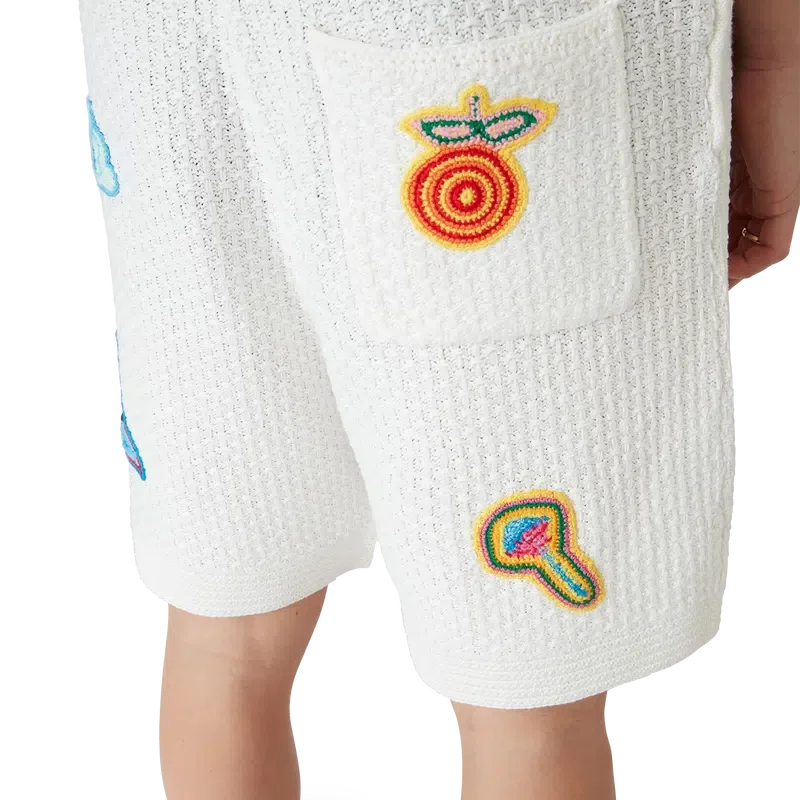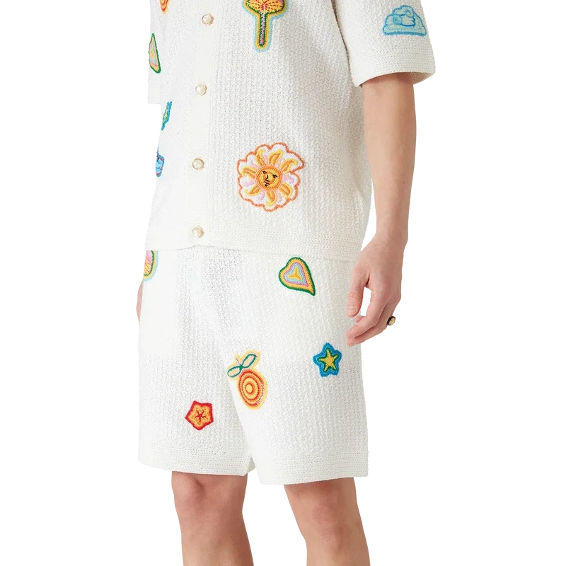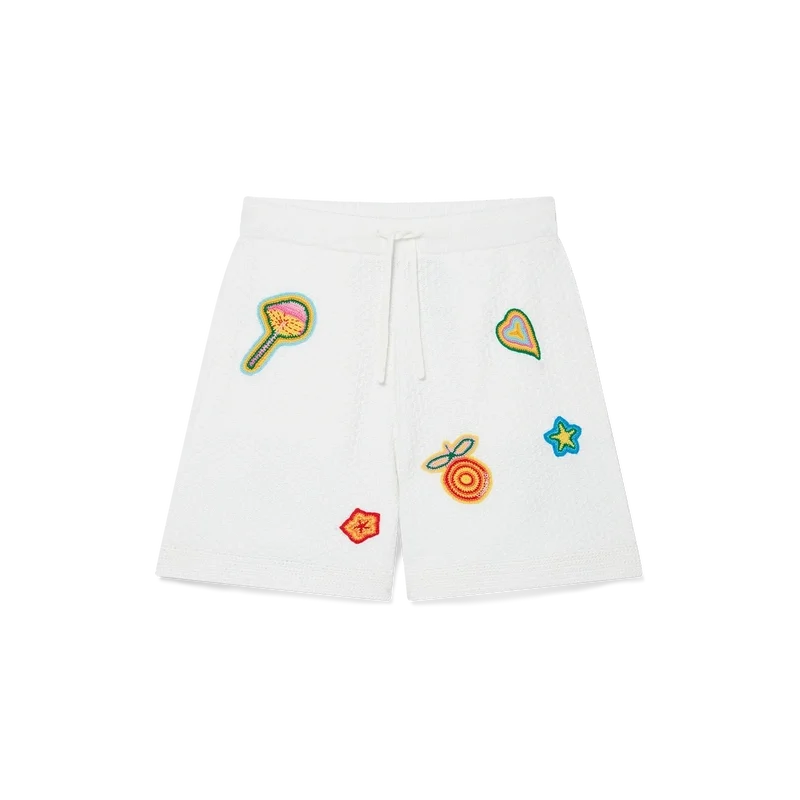 I pantaloncini all’uncinetto con motivi sono un modello al ginocchio realizzato in tessuto all’uncinetto con motivi in cotone mercerizzato. Completati con motivi che richiamano gli elementi classici del design della Maison, hanno una cintura elasticizzata, chiusura con coulisse e tasche anteriori oblique.