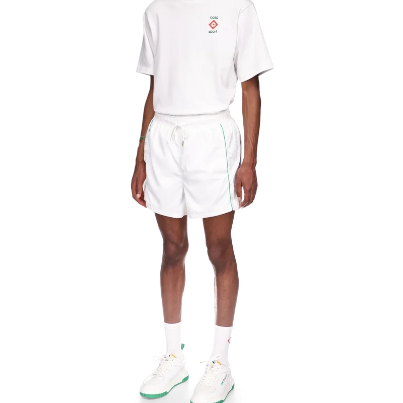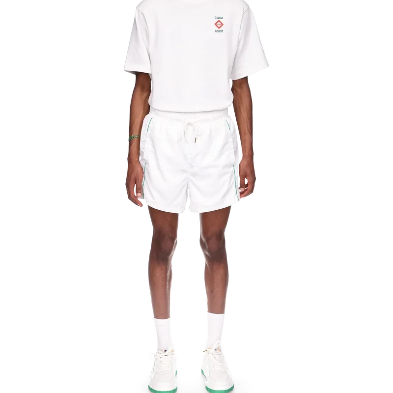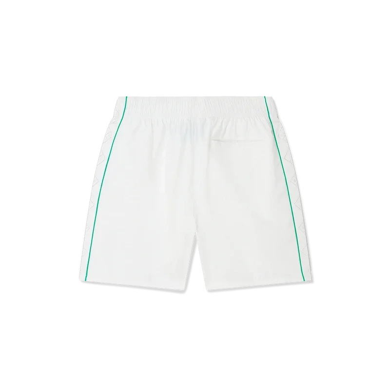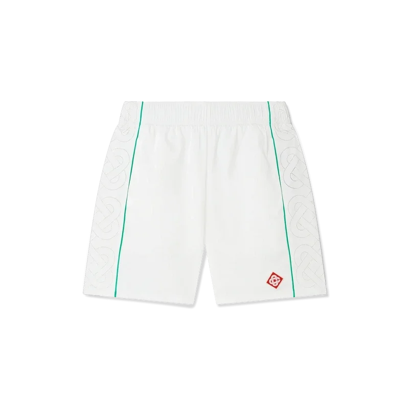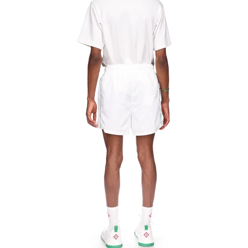 I pantaloncini da tuta con dettagli laser sono un capo sportivo caratterizzato dai dettagli laser-cut del Diamond Monogram e del Monogramma Cuore, segni distintivi della Maison. Realizzati nel nostro caratteristico tessuto taffetà leggero, sono dotati di cintura elasticizzata, cordino con puntali dorati, tasche laterali, bordino e tasca posteriore.
