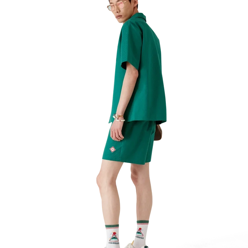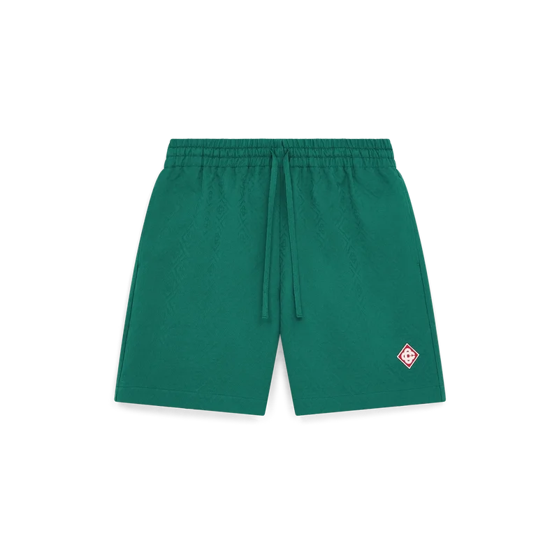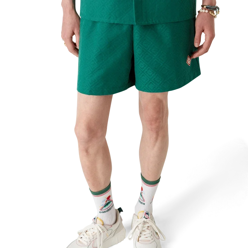 I pantaloncini in jacquard di cotone Monogram sono un modello classico realizzato in tessuto jacquard di cotone Monogram. Sono rifiniti con elastico in vita, coulisse con puntali dorati, una tasca posteriore e tasche laterali a filetto.