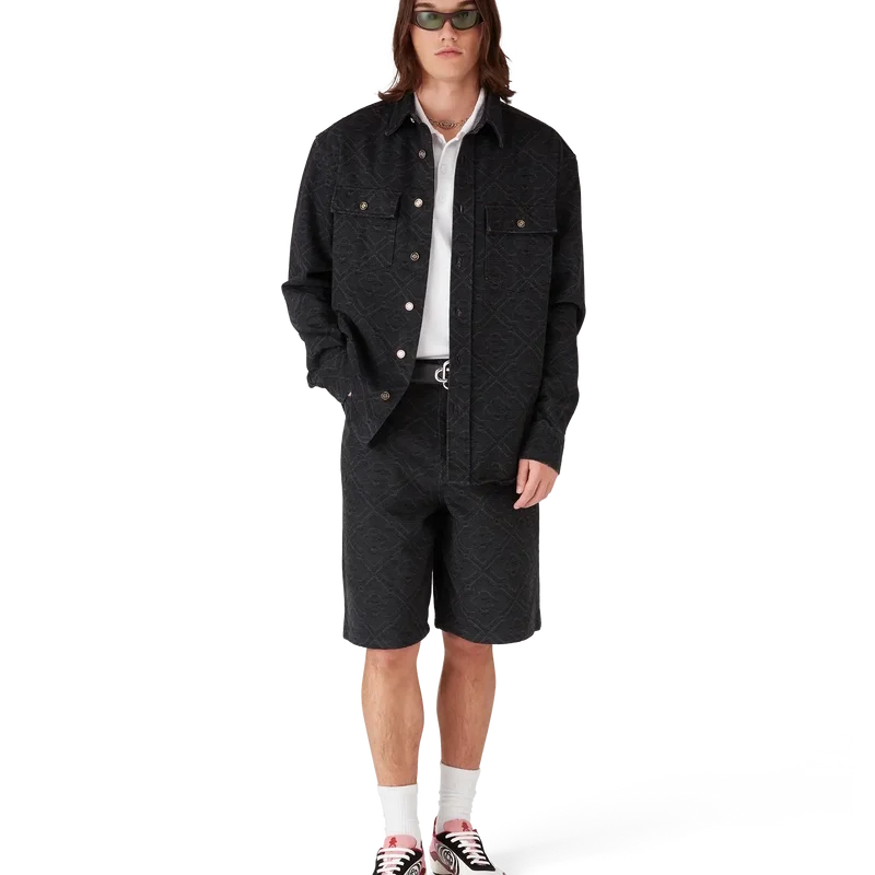 I pantaloncini in denim con Monogram al laser hanno un taglio al ginocchio e presentano il motivo Monogram della Maison realizzato con tecniche laser. Sono rifiniti con tasche anteriori in stile jeans, tasche posteriori applicate, chiusura con bottone e zip, dettagli metallici placcati in oro con marchio e una silhouette contemporanea.