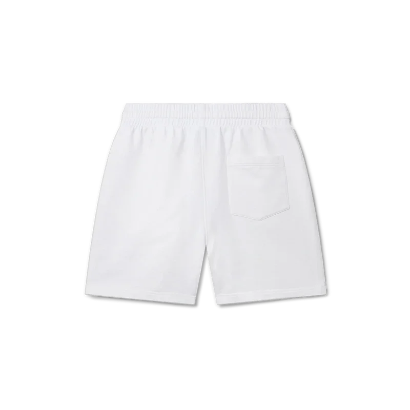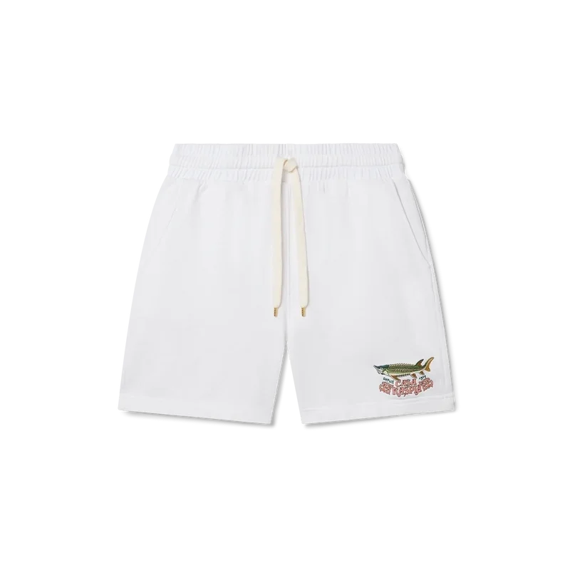 Un capo iconico di Casablanca Paris, questi pantaloncini unisex bianchi presentano il nostro esclusivo logo a doppio marchio ricamato a contrasto. Realizzati in 100% cotone biologico, questi pantaloncini arrivano sopra il ginocchio e sono rifiniti con chiusura con coulisse con puntali dorati e tasche laterali.