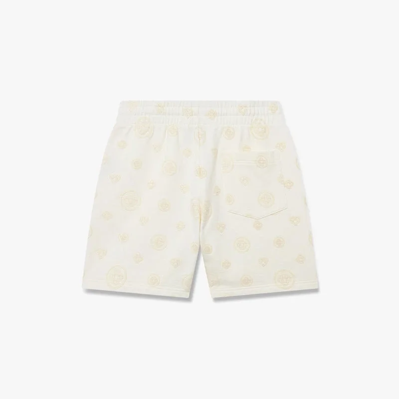Pantaloncini in felpa con monogramma bianco sporco applicato