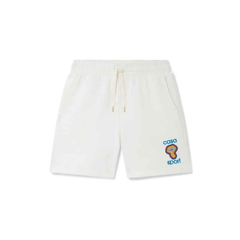 I pantaloncini da tuta ricamati Mind Vibrations in bianco sporco presentano una grafica stagionale ispirata alla medicina della terra e alla capacità della natura di guarire lo spirito. Realizzati in cotone biologico al 100%, il modello corto arriva sopra il ginocchio ed è rifinito con chiusura a coulisse con puntali dorati e tasche laterali.