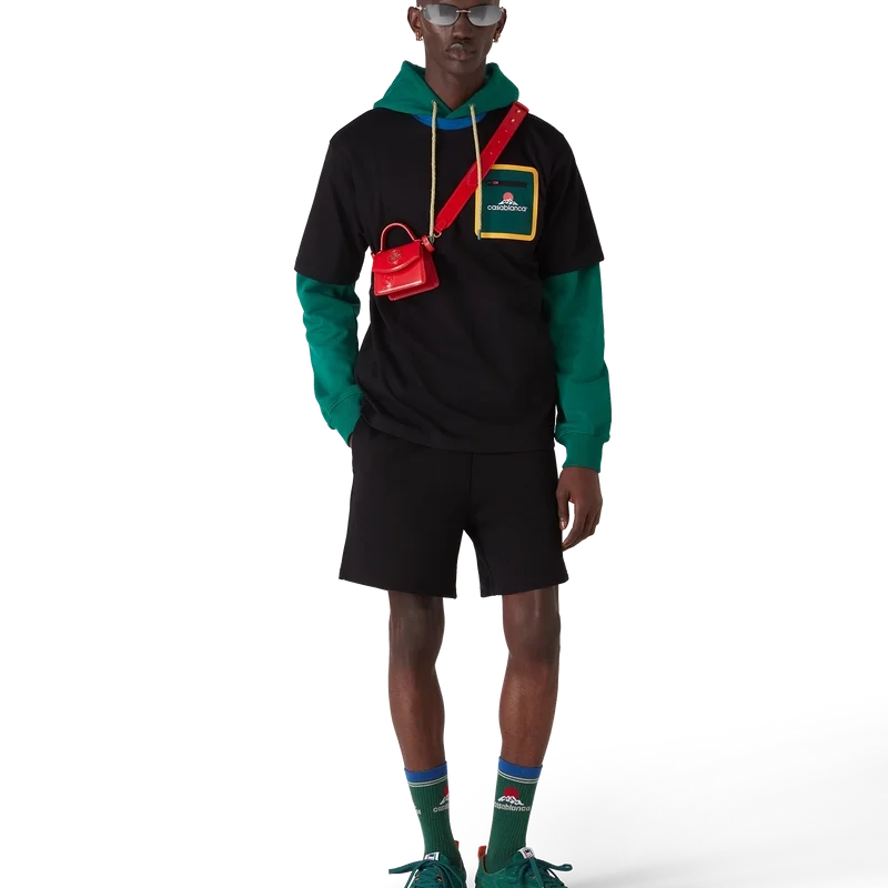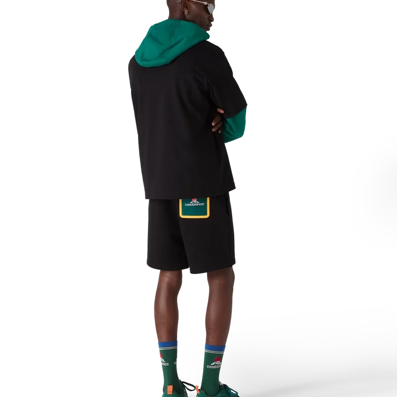 I pantaloncini da tuta Montagne sono un classico capo di abbigliamento sportivo realizzato in tessuto di cotone biologico. Sono dotati di elastico in vita, chiusura con coulisse, tasca posteriore con i colori principali del marchio e chiusura con cerniera, e tasche laterali interne alle cuciture.