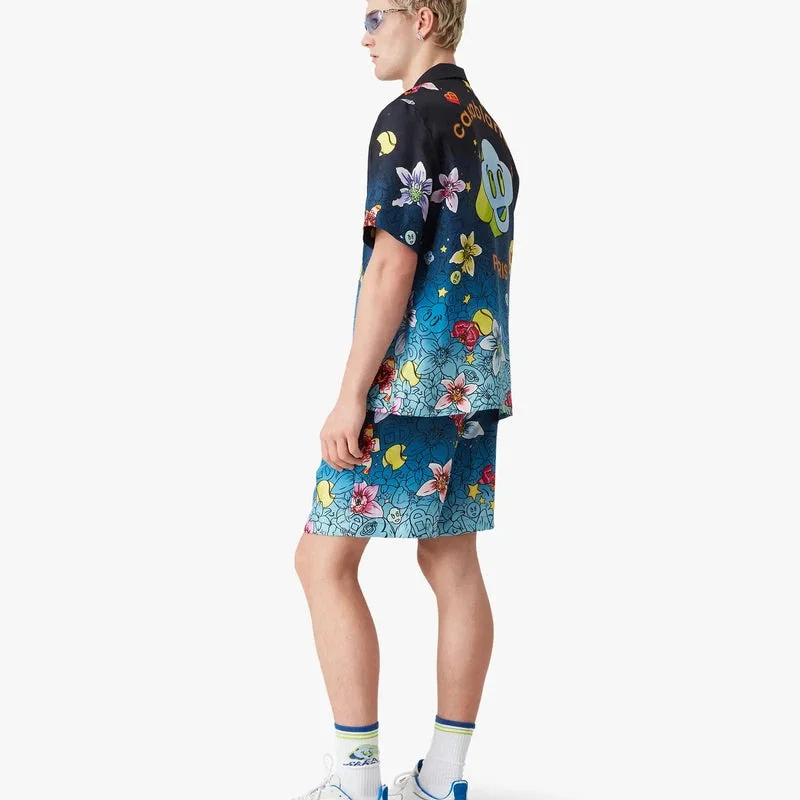 I pantaloncini in seta Collage D’icones Graphiques presentano un design raffinato, caratterizzato da grafiche che rappresentano l’iconografia e gli elementi di design della nuova stagione, tra cui interpretazioni del logo, del sorriso CC e del fiore di orchidea. Sono dotati di elastico in vita, chiusura con coulisse, fodera, tasche laterali interne e tasca posteriore applicata.