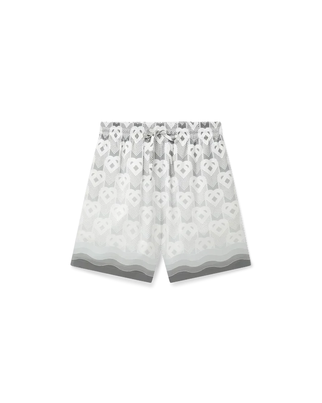Pantaloncini in seta con monogramma a cuori sfumati