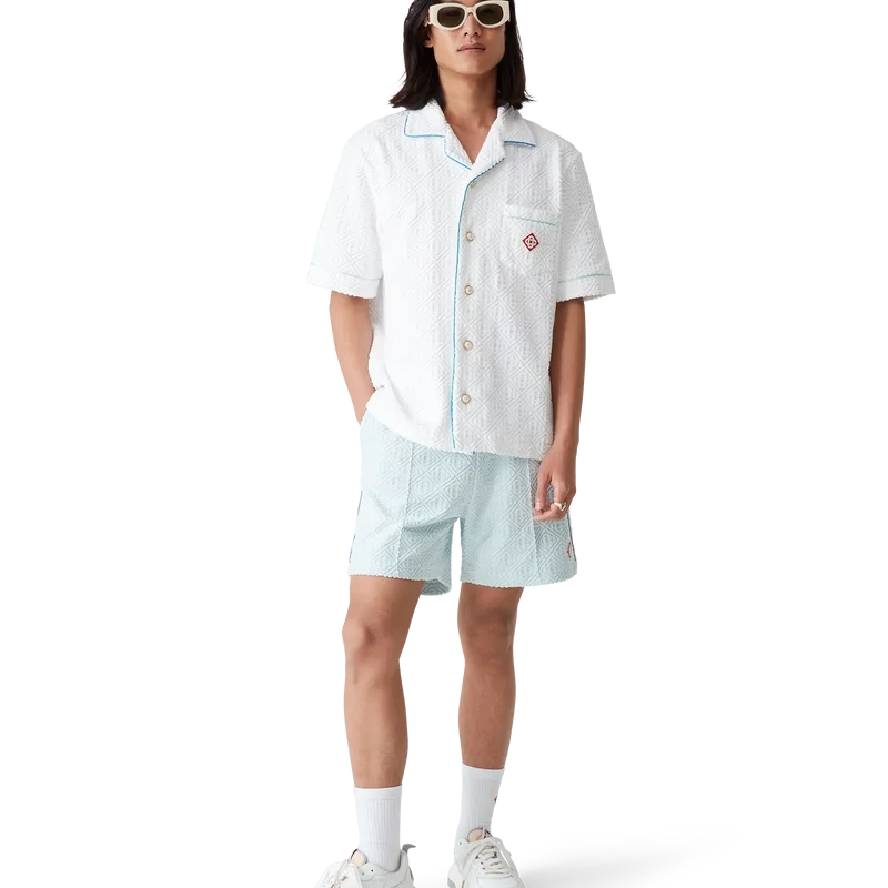 I pantaloncini in spugna Monogram sono realizzati in tessuto spugna misto cotone Monogram e presentano il caratteristico logo a rombi della Maison. Sono rifiniti con tasche anteriori oblique, una tasca posteriore applicata, chiusura con coulisse e cuciture a pieghe.