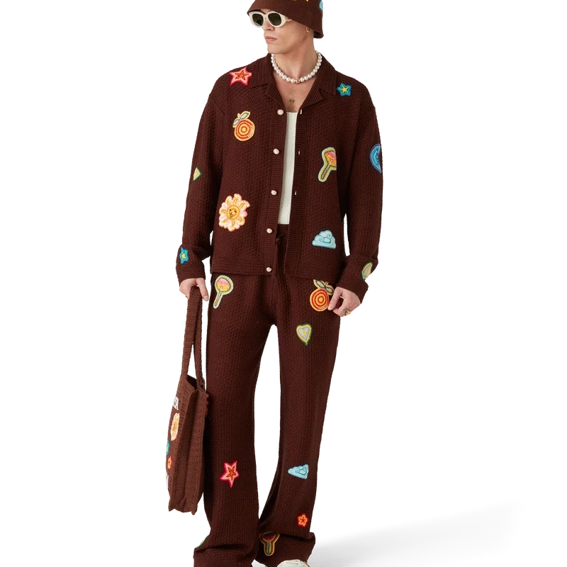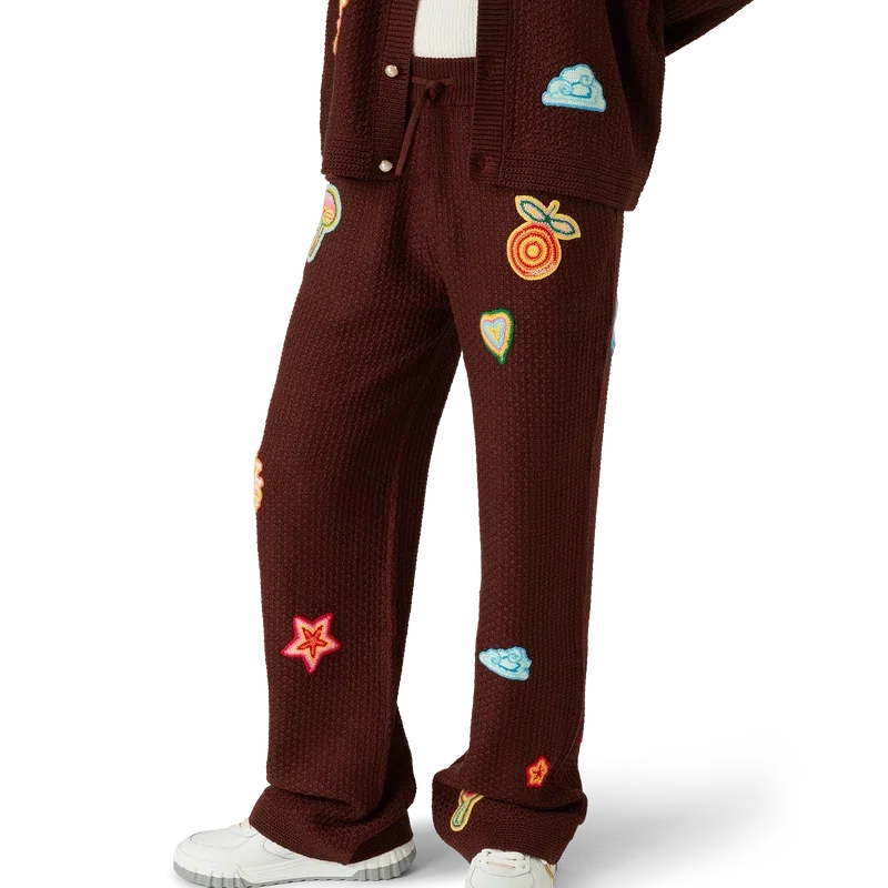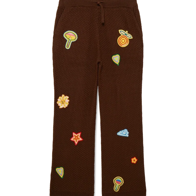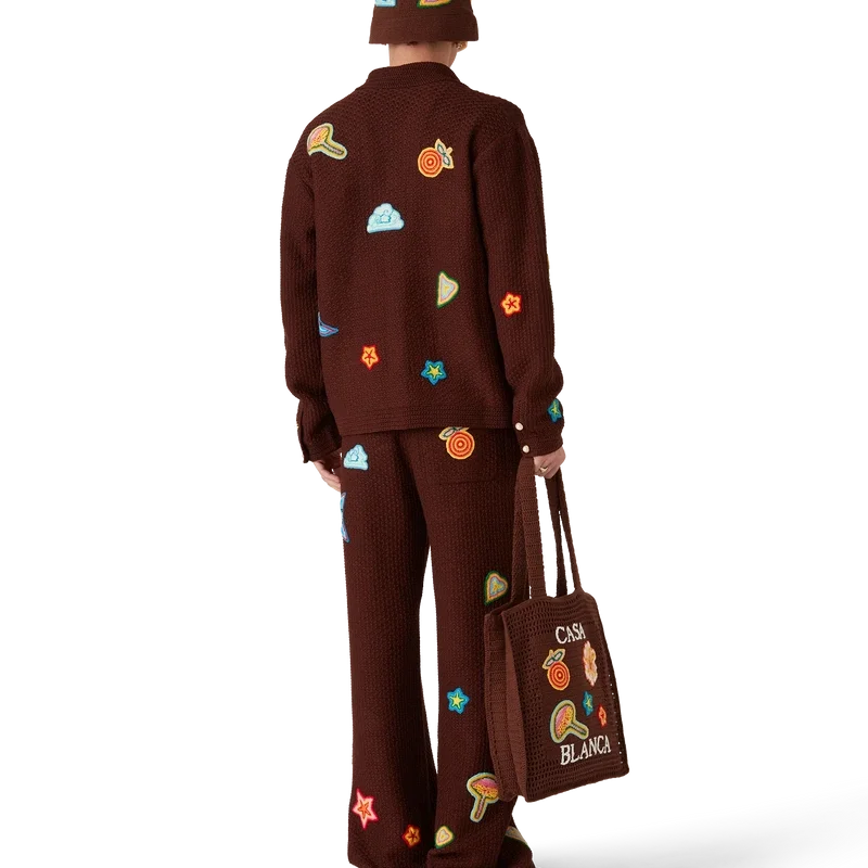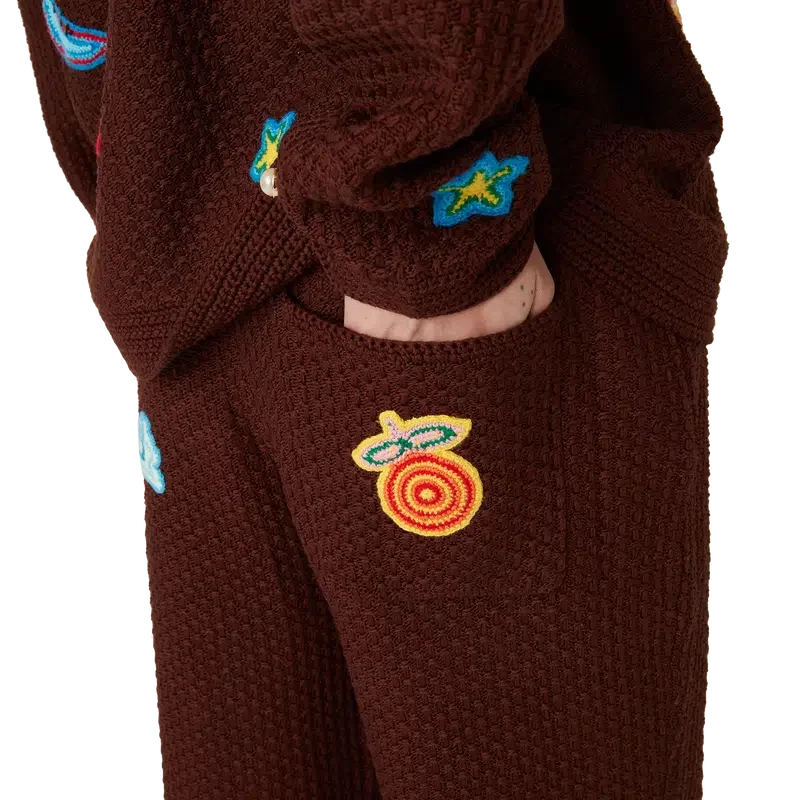 I pantaloni all’uncinetto con motivi sono un modello in maglia realizzato in tessuto all’uncinetto con motivi in cotone mercerizzato. Sono dotati di elastico in vita, chiusura con coulisse, tasche laterali interne e motivi che richiamano il classico elemento di design della Maison.