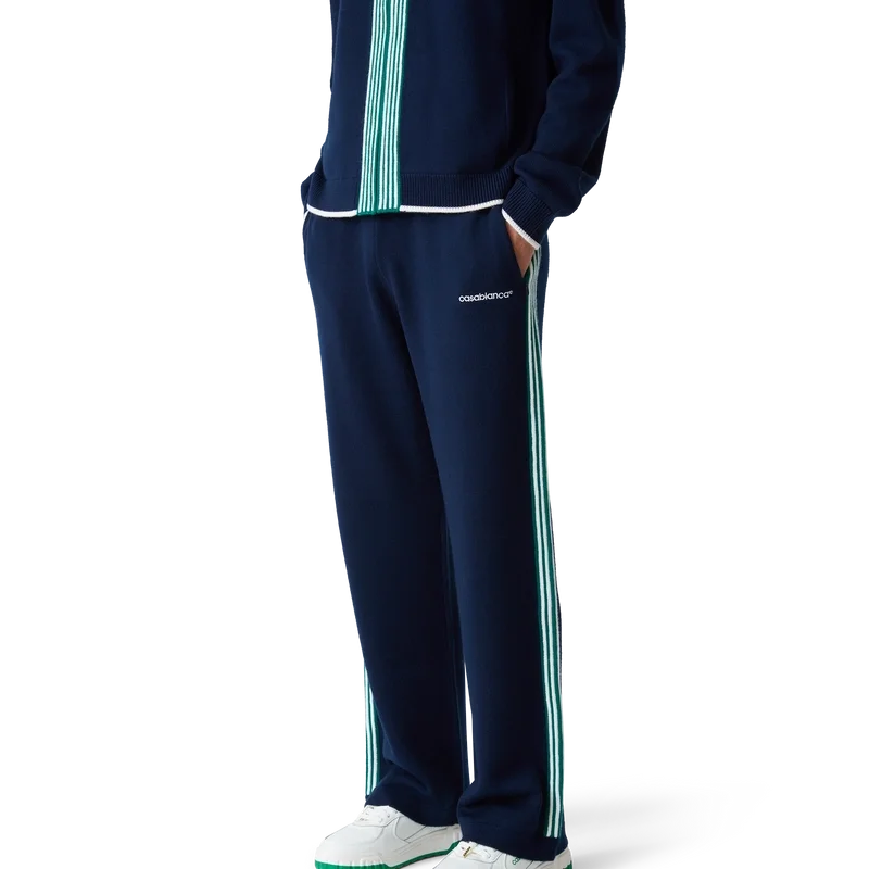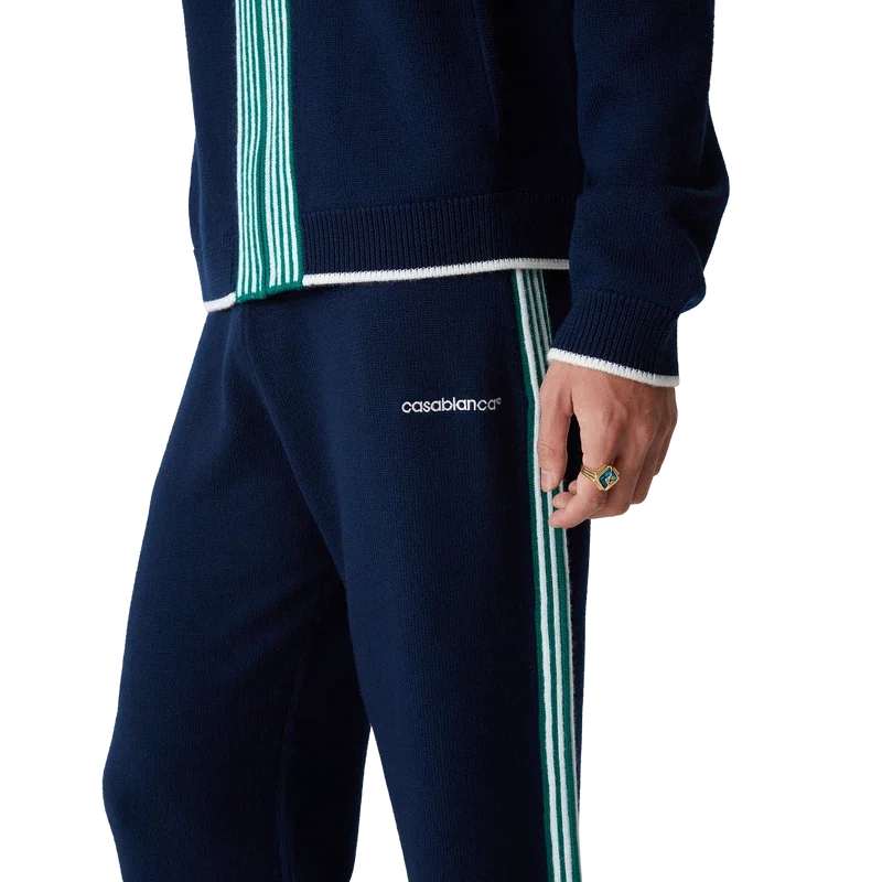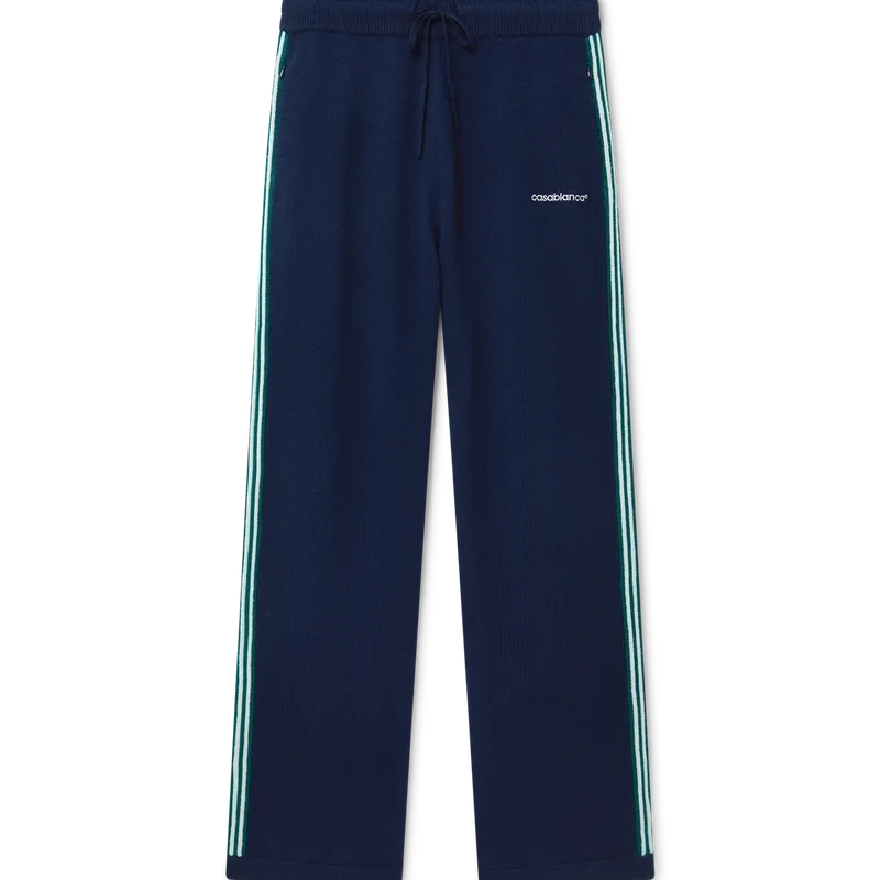 I pantaloni da tennis in maglia presentano un design ispirato all’abbigliamento sportivo, realizzati in tessuto di lana merino. Rifiniti con bordi a costine a contrasto su polsini, orlo, colletto e abbottonatura, chiusura frontale con zip, colletto a imbuto e logo Casablanca.