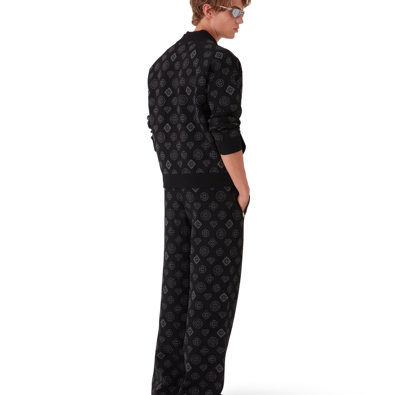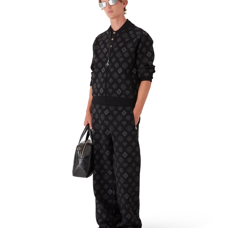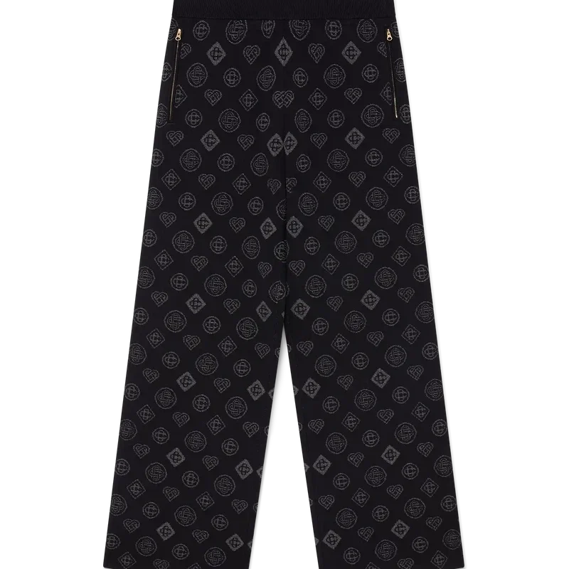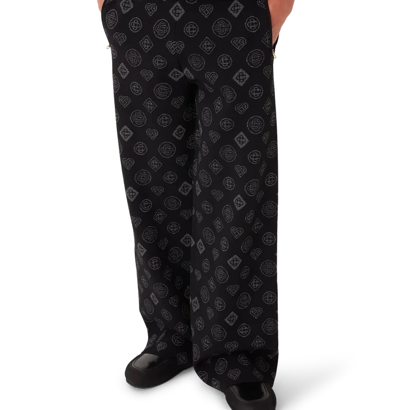 I pantaloni in jacquard Monogram presentano un taglio dritto e sono caratterizzati dal motivo ripetuto del logo Honeydew della Maison. Questo motivo si differenzia dagli altri nostri monogrammi in quanto combina forme uniche per formare un disegno coerente. Si tratta di un design più incentrato sulle icone. Completati da una cintura elasticizzata e da tasche con chiusura a zip.