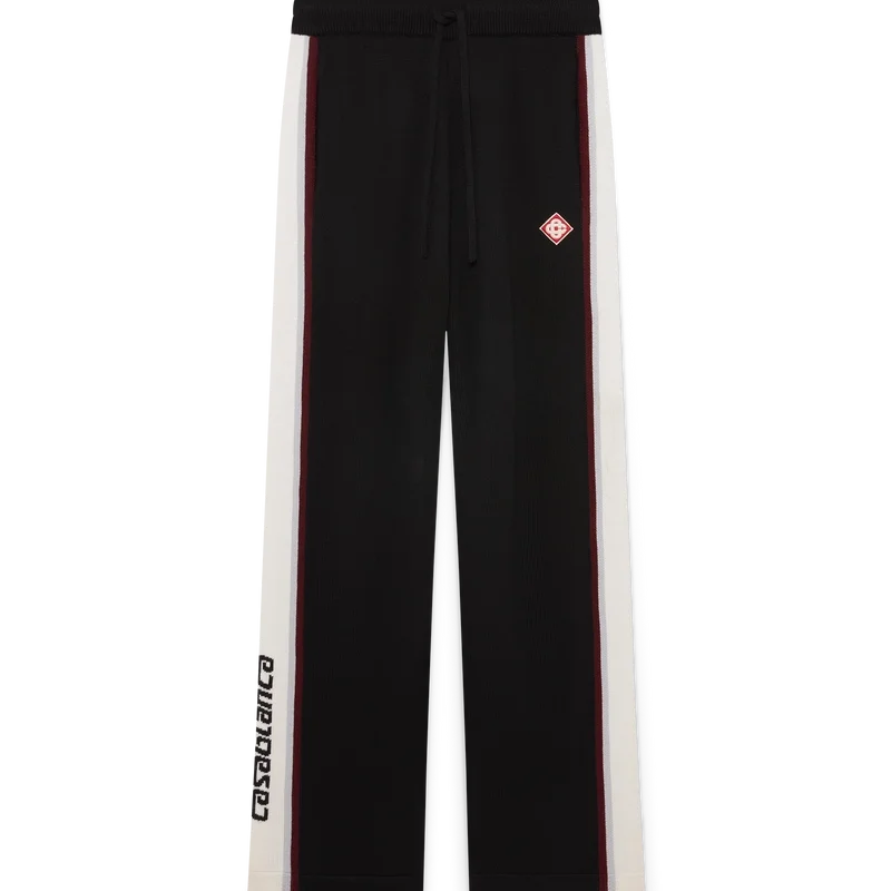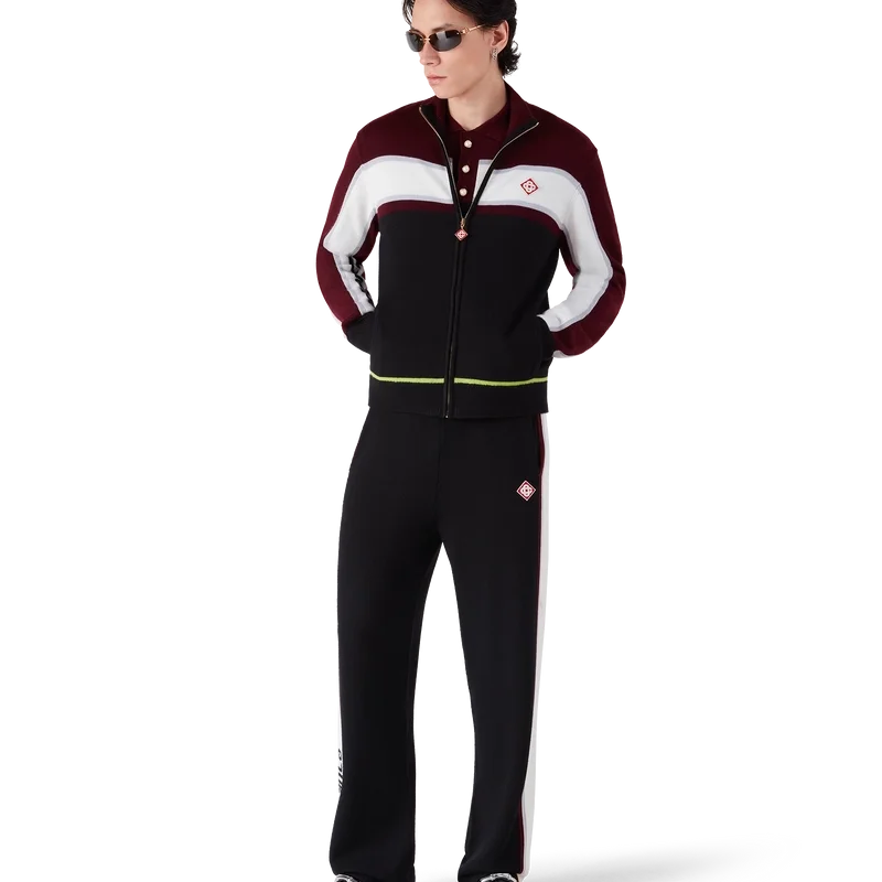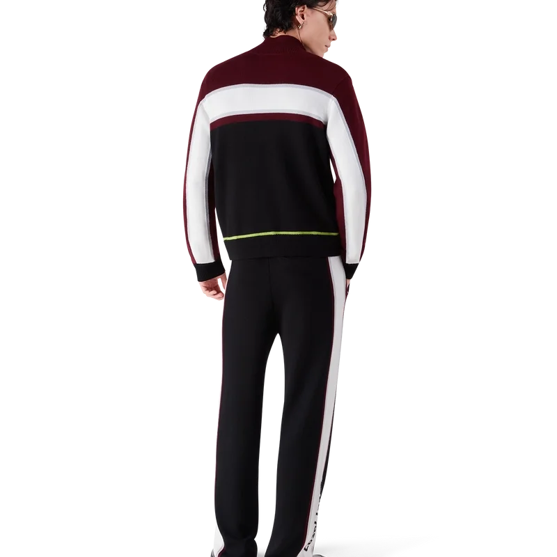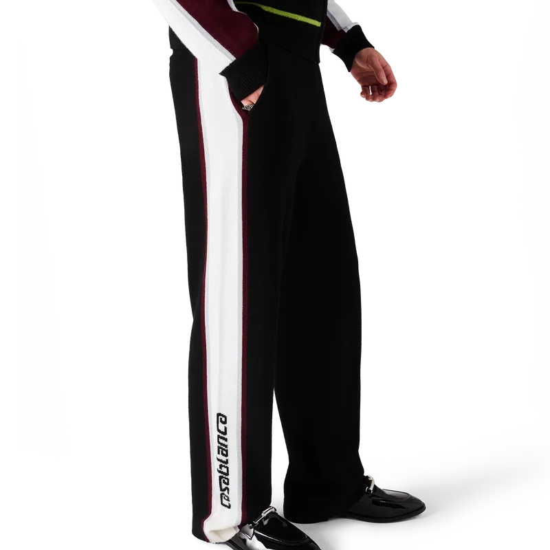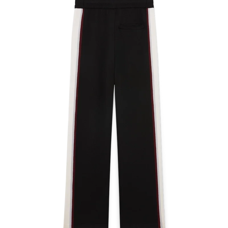 I pantaloni in maglia merino a righe presentano un design sofisticato, realizzati in lana merino con una trama a maglia testurizzata. Rifiniti con una cintura elasticizzata e una silhouette comoda che bilancia la praticità atletica con una sartoria raffinata.
