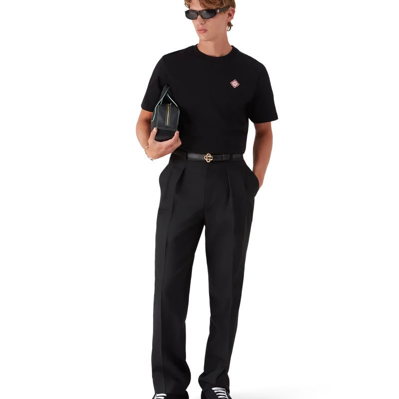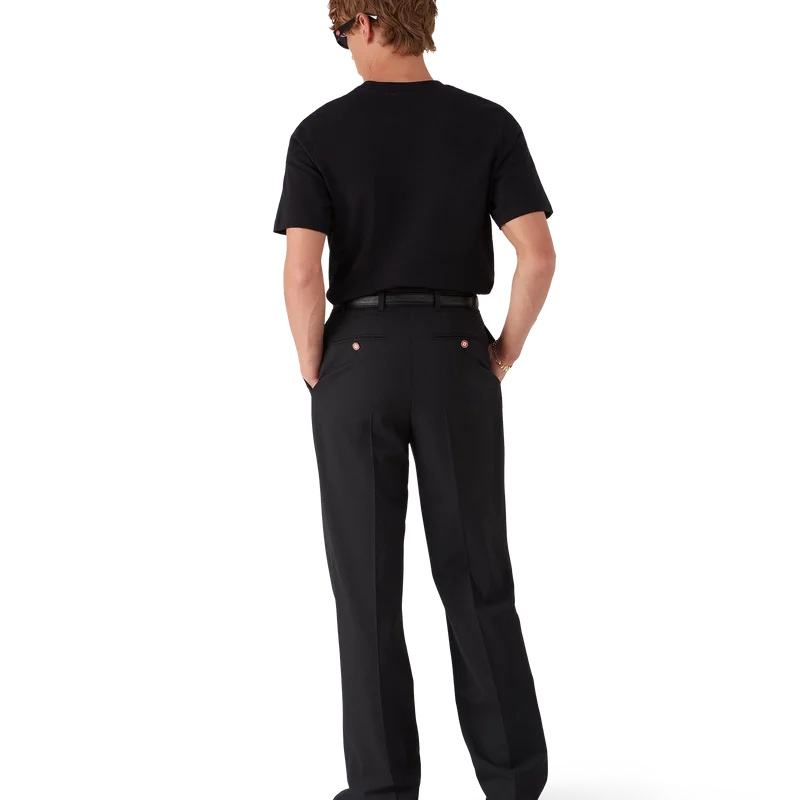 I pantaloni sartoriali in lana con pinces presentano un taglio dritto e sono realizzati in tessuto sartoriale. Sono rifiniti con pinces sul davanti, chiusura con cerniera, tasche anteriori oblique, fodera, passanti per cintura e tasche posteriori a filetto con chiusura a bottone a gambo piatto placcato oro, smaltato e con il logo CC intrecciato della Maison.