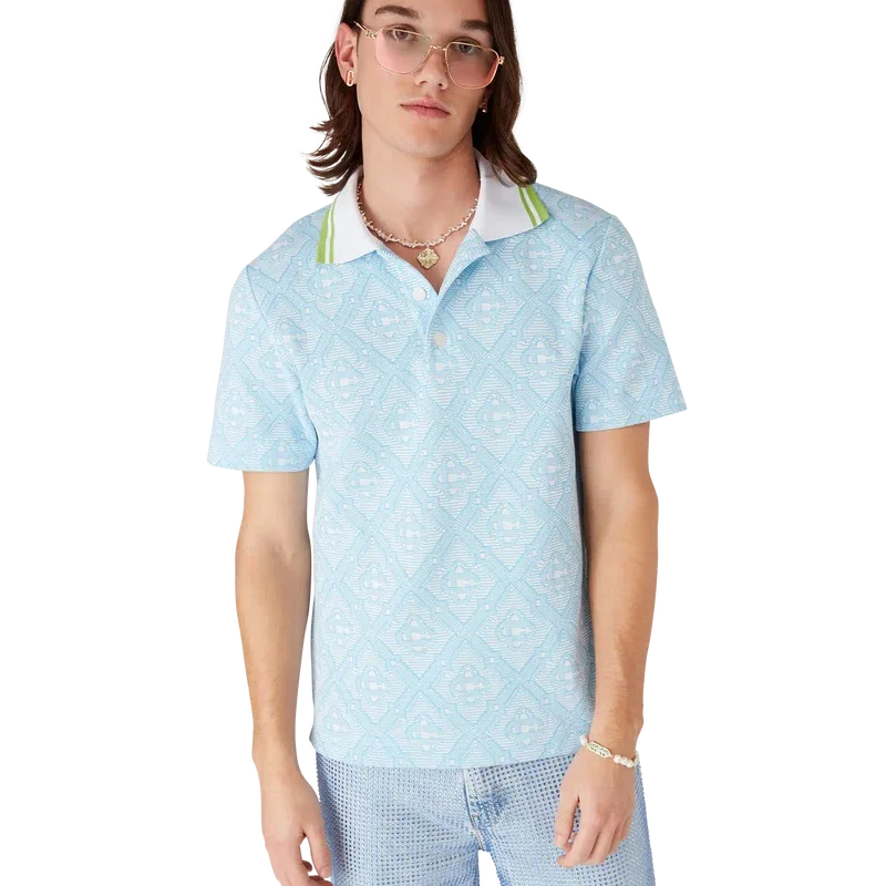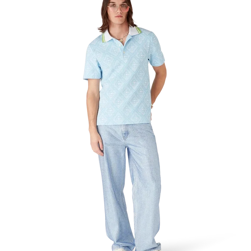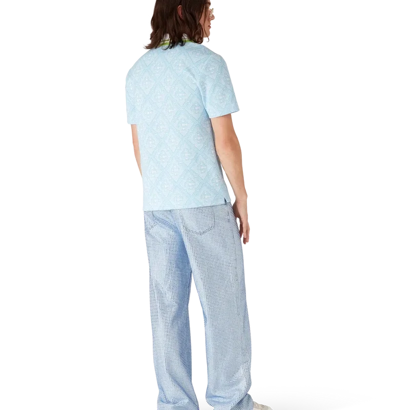 La polo a maniche corte in jacquard azzurro è un modello classico caratterizzato dal monogramma iconico della Maison. Rifinita con colletto a costine con bordi a strisce a contrasto, chiusura con bottoni e bottoni in corozo con logo CC intrecciato.
