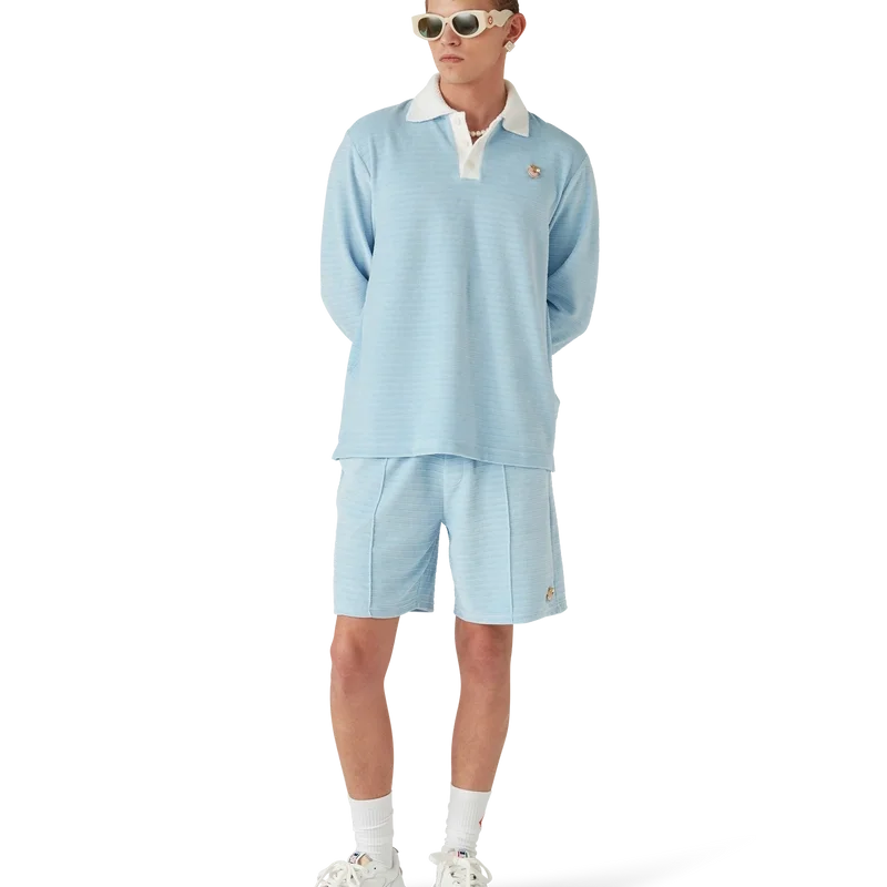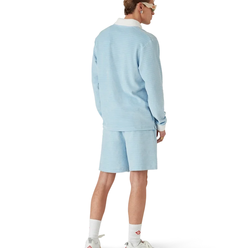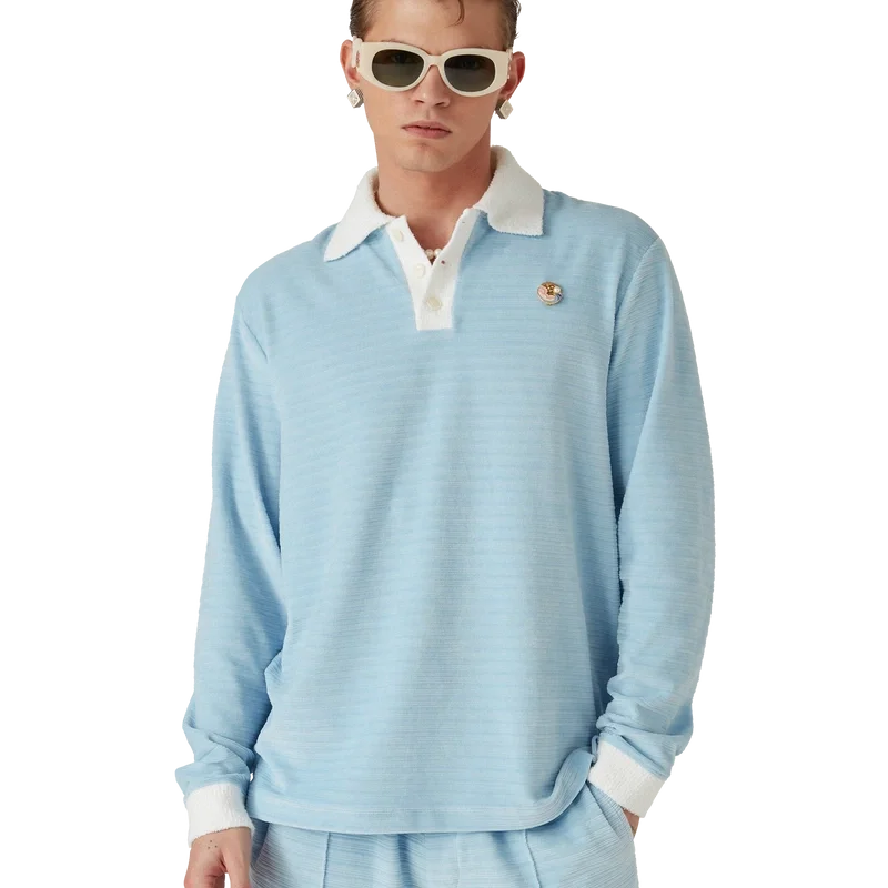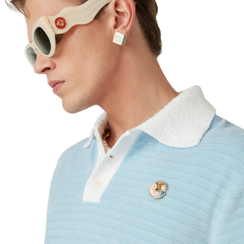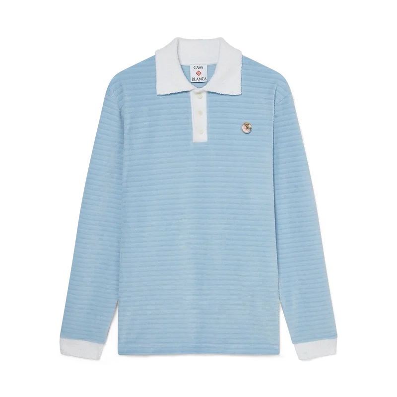 La polo a righe in velluto è un modello a maniche lunghe realizzato in tessuto a righe in velluto con la spilla dei quattro elementi della Maison. Completata da bottoni in corozo con logo CC intrecciato, abbottonatura a tre bottoni e abbottonatura, polsini e colletto a costine a contrasto.
