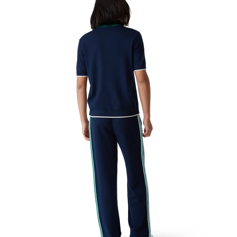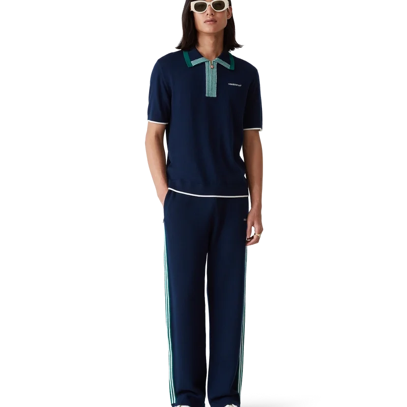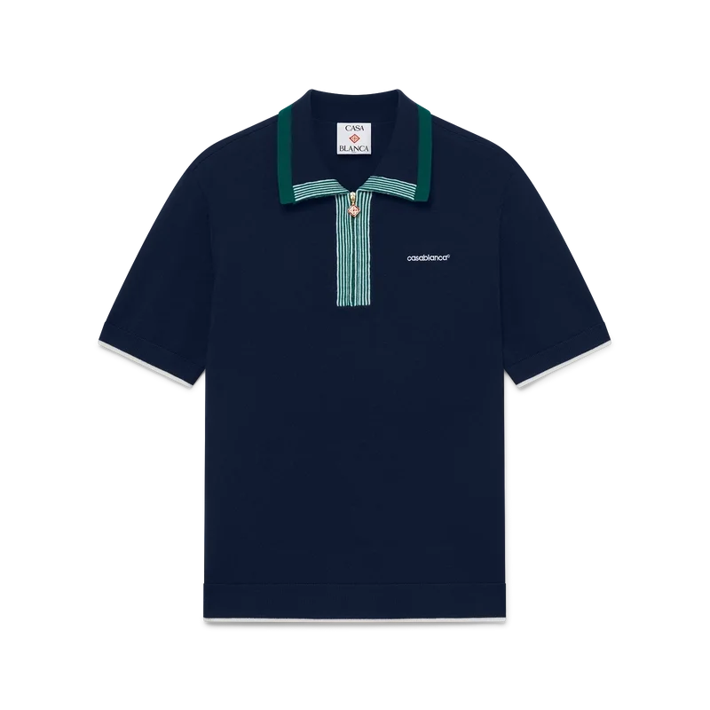 La polo da tennis in maglia è un modello classico realizzato in tessuto di lana merino. Rifinita con bordi a costine a contrasto su polsini, orlo, colletto e abbottonatura, chiusura frontale con zip, colletto a costine e logo Casablanca.