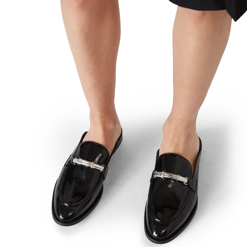 Il mocassino slip-on Black Bamboo è un modello piatto senza tallone e con punta chiusa, realizzato con tomaia in pelle di vitello italiana. Completato dal nostro iconico cinturino in bambù, fodera in pelle, suola in cuoio, dettagli placcati oro e tacco a blocco da 10 mm.
