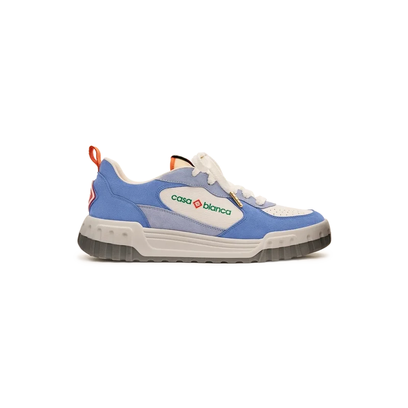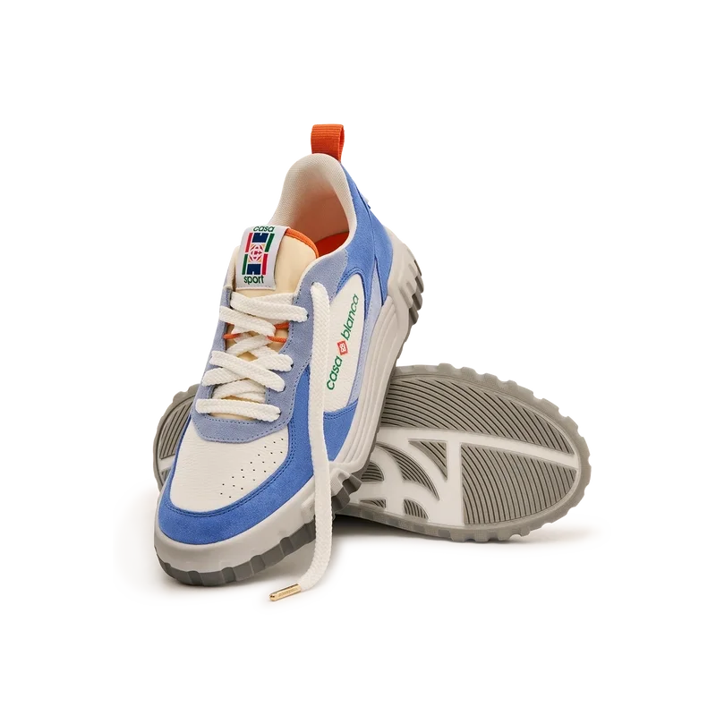 Il linguaggio stilistico delle Court Sneaker riflette le silhouette iconiche degli anni ’90. I colori presenti sulla suola in gomma sono una combinazione dei codici raffinati del tennis e dell’architettura classica e creano una palette armoniosa su tutta la scarpa, con un’attenzione particolare ai colori primari, bilanciati dal bianco del tennis per creare una storia cromatica incentrata sullo sport.La tomaia delle scarpe presenta linee fluide e integrate, in omaggio alle silhouette iconiche degli anni ’90. Il marchio Casablanca è ben visibile su tutta la scarpa, compreso il motivo a diamante caratteristico del marchio sul tallone, il logo in silicone sui pannelli laterali e l’etichetta sulla linguetta e la soletta con motivo intrecciato ispirato al campo da tennis, da cui deriva il nome “Court”.