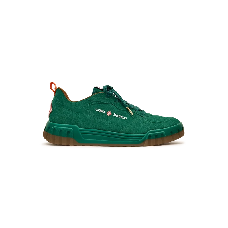 Il linguaggio stilistico delle Court Sneaker riflette le silhouette iconiche degli anni ’90. I colori presenti sulla suola in gomma sono una combinazione dei codici raffinati del tennis e dell’architettura classica e creano una palette armoniosa su tutta la scarpa, con un’attenzione particolare ai colori primari, bilanciati dal bianco del tennis per creare una storia cromatica incentrata sullo sport.La tomaia delle scarpe presenta linee fluide e integrate, in omaggio alle silhouette iconiche degli anni ’90. Il marchio Casablanca è ben visibile su tutta la scarpa, compreso il motivo a diamante caratteristico del marchio sul tallone, il logo in silicone sui pannelli laterali e l’etichetta sulla linguetta e la soletta con motivo intrecciato ispirato al campo da tennis, da cui deriva il nome “Court”.